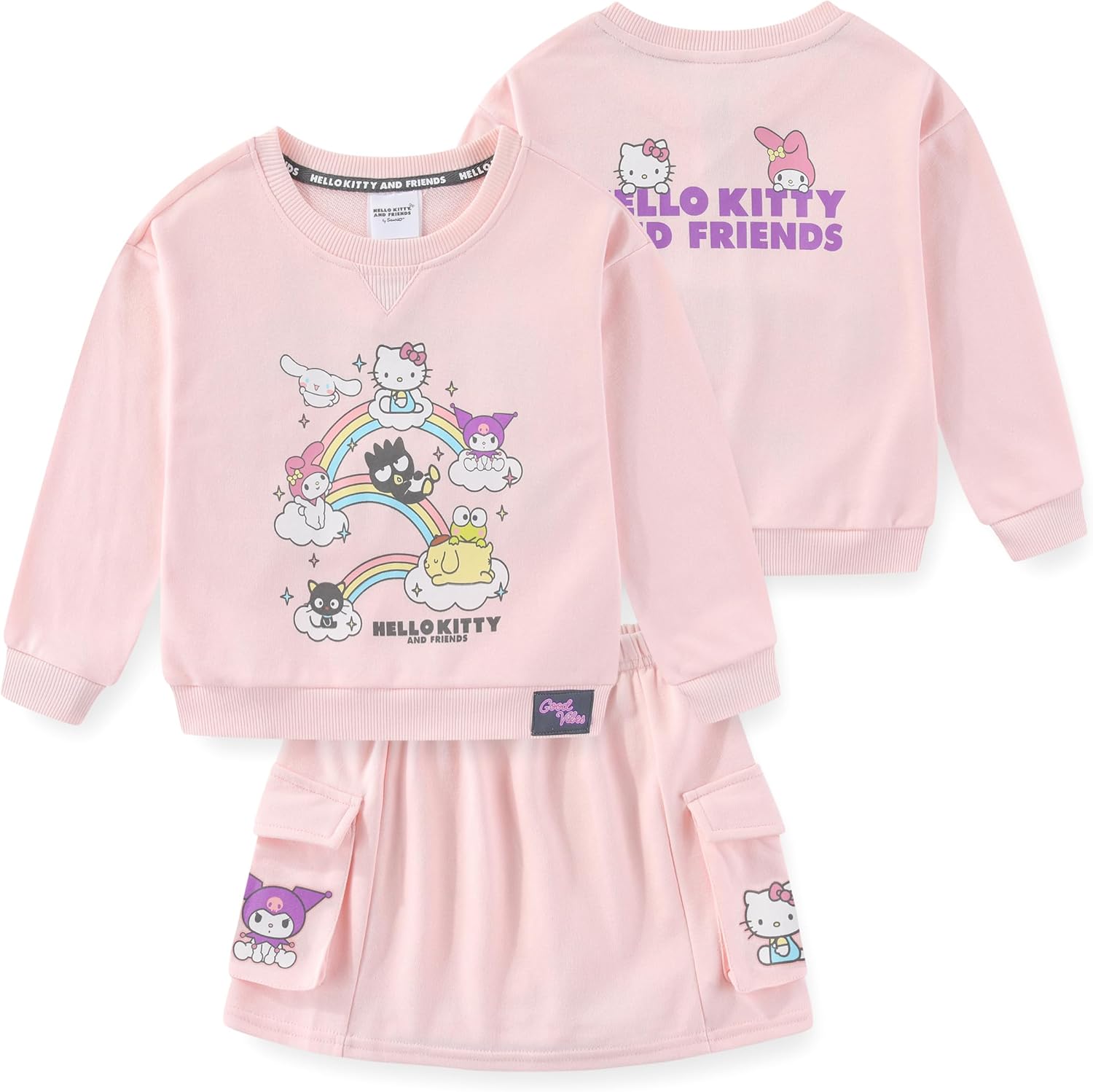 Hello Kitty & Friends Sanrio Girls French Terry Sweatshirt and Skort Skirt 2 Piece Set for Big Kids