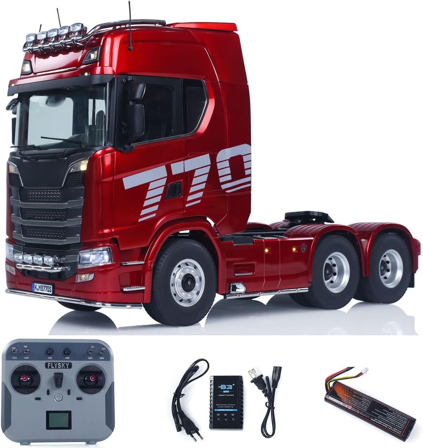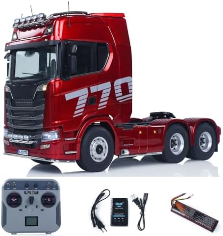 KABOLITE 1/14 6x6 770S 100 RC Tractor Truck Lorry Car 2Speed Gearbox Differential Lock RTR Model for Adult(Red), Fit with Semi Trailer Flatbed 1502 TH16848, 1/14 2Axle Trailer TH01024