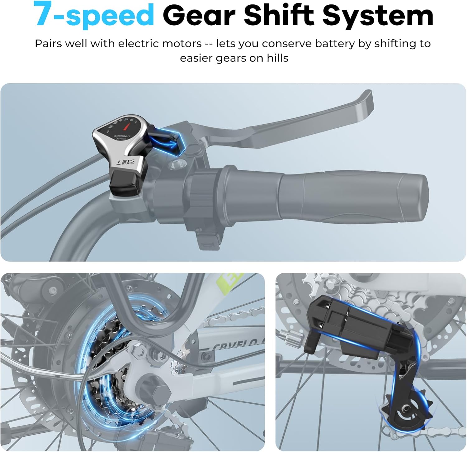 ⚙️ 7-Speed Gear System & 3 Riding Modes – Switch between throttle, pedal assist, or traditional bike mode. The 7-speed drivetrain allows smooth shifting across terrains, making this adult electric bicycle versatile for both city streets and off-road trails.