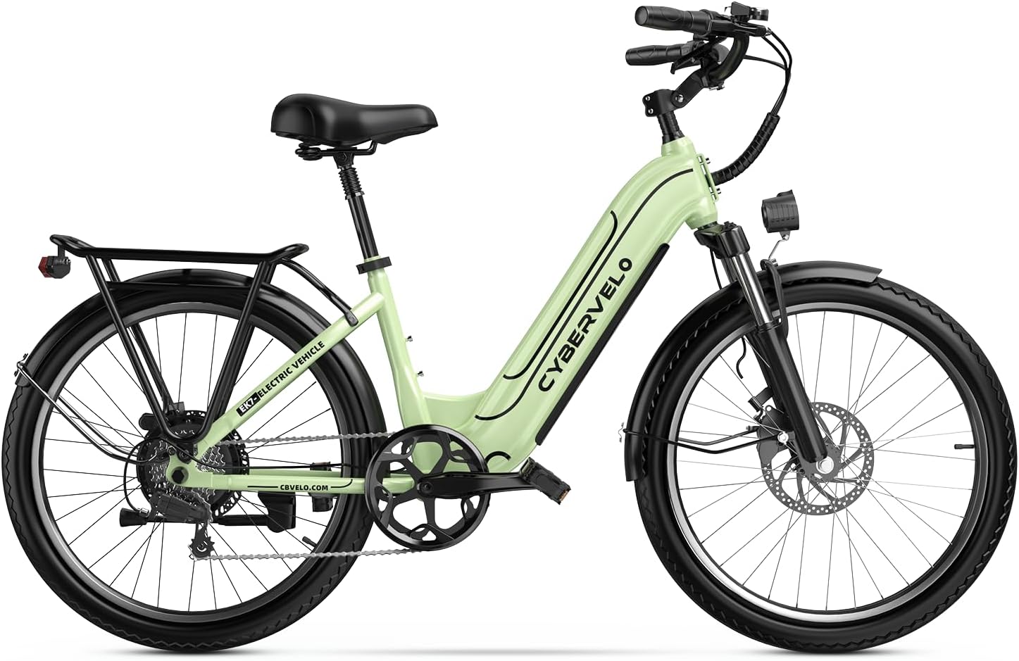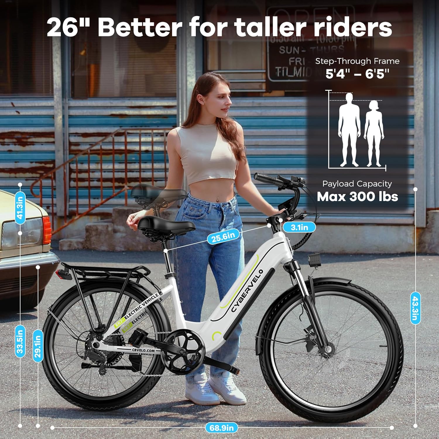 🌟 Front Suspension & 26-Inch Step-Through Frame for All-Terrain Comfort – Built with a durable front suspension fork, this electric womens bike absorbs bumps and ensures a stable, comfortable ride on pavement, gravel, or sand.