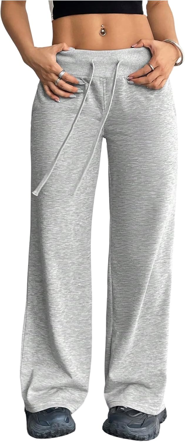 Women's Wide Leg Sweatpants Drawstring Elastic Workout Athletic Running Sweat Track Pants Joggers
