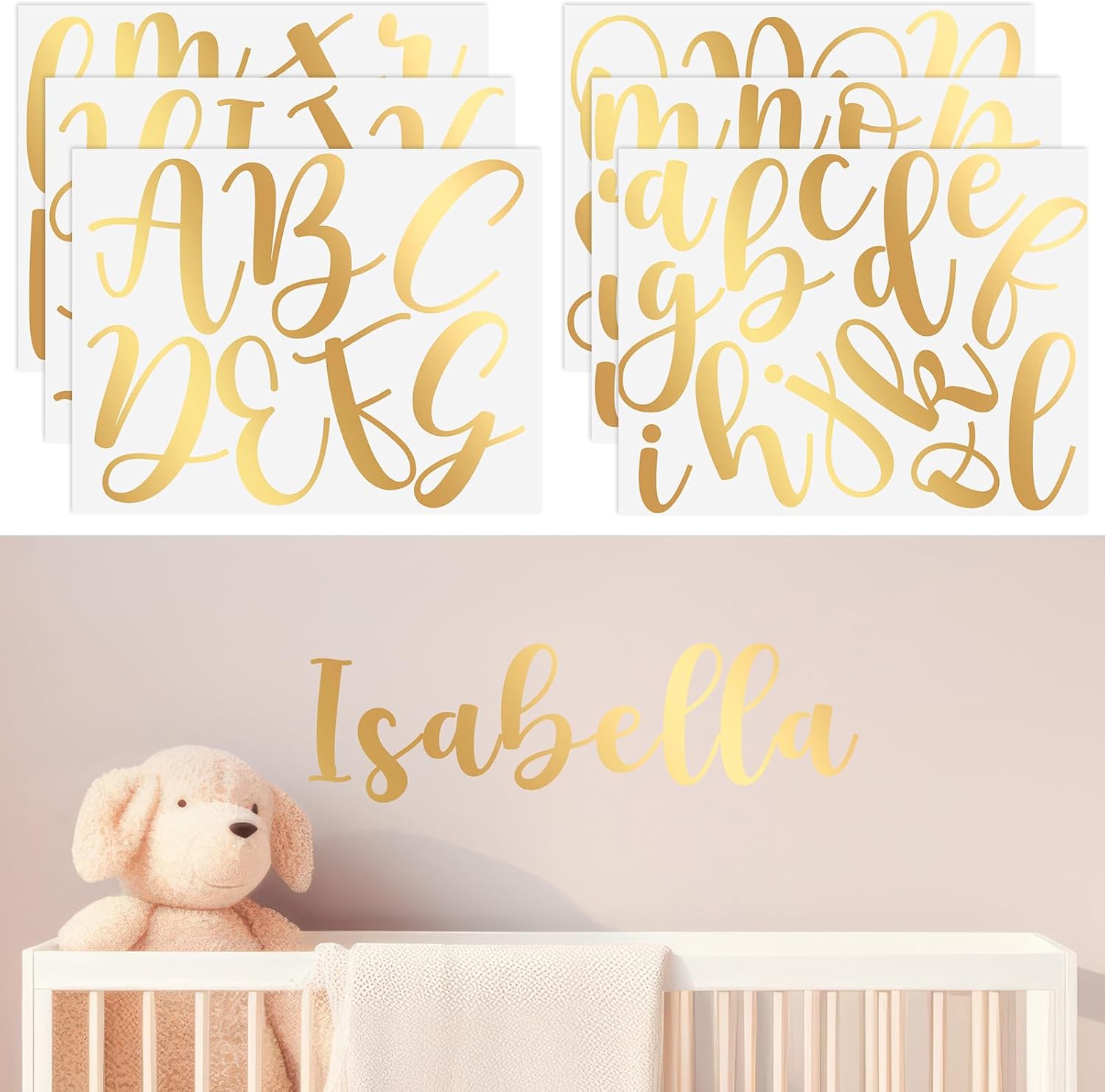 Name Wall Stickers: you will receive 7 gold letter wall stickers, including 1 each of the 26 letters A-Z, 1-3 each of the 26 lowercase letters a-z, you can use this set of stickers to spell out your name and create a unique decal