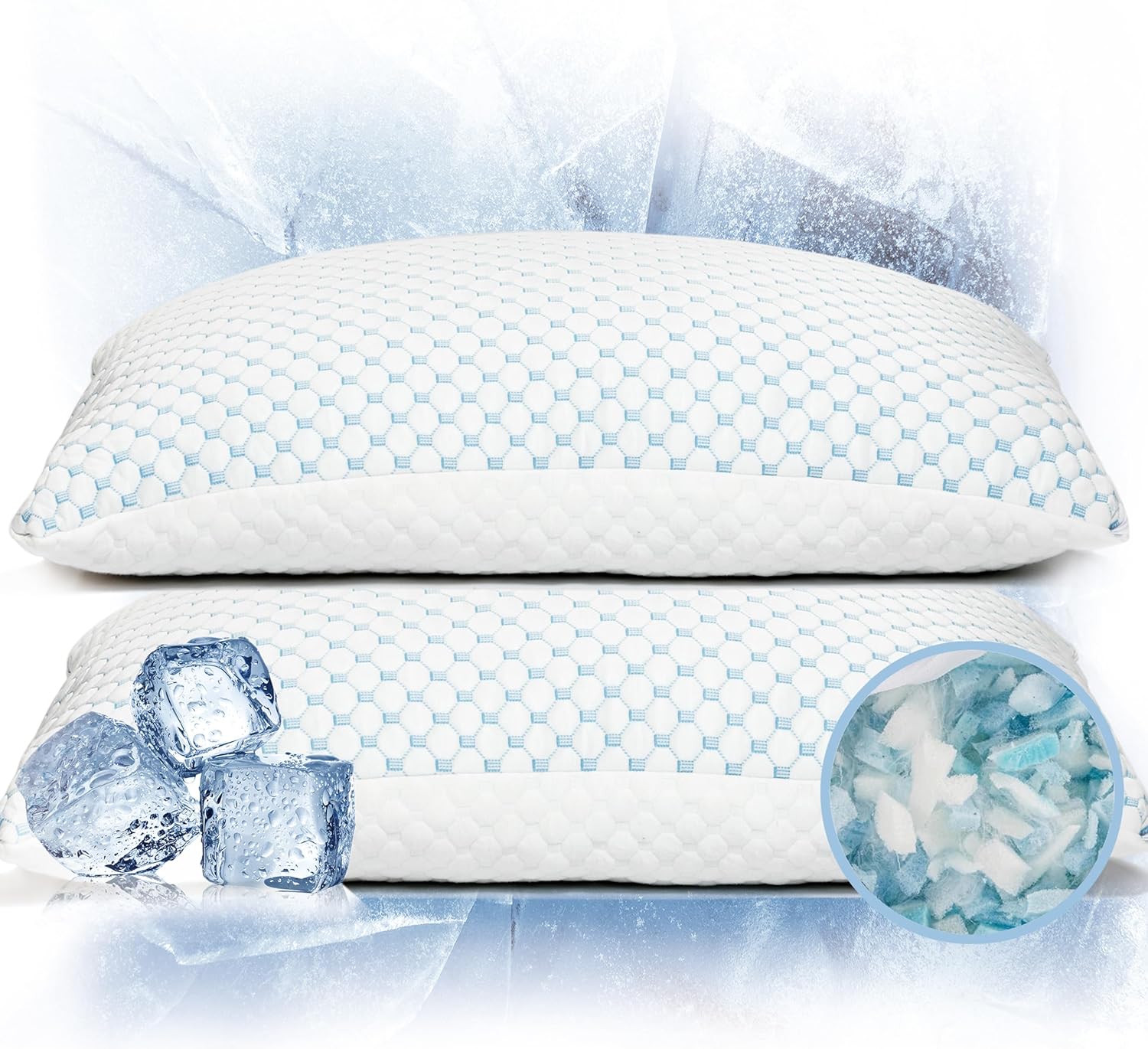 Premium Adjustable Shredded Memory Foam Pillow - Suitable for Side, Back, and Stomach Sleepers, with Cooling Fiber Machine Washable Cover (Standard-2PCS)