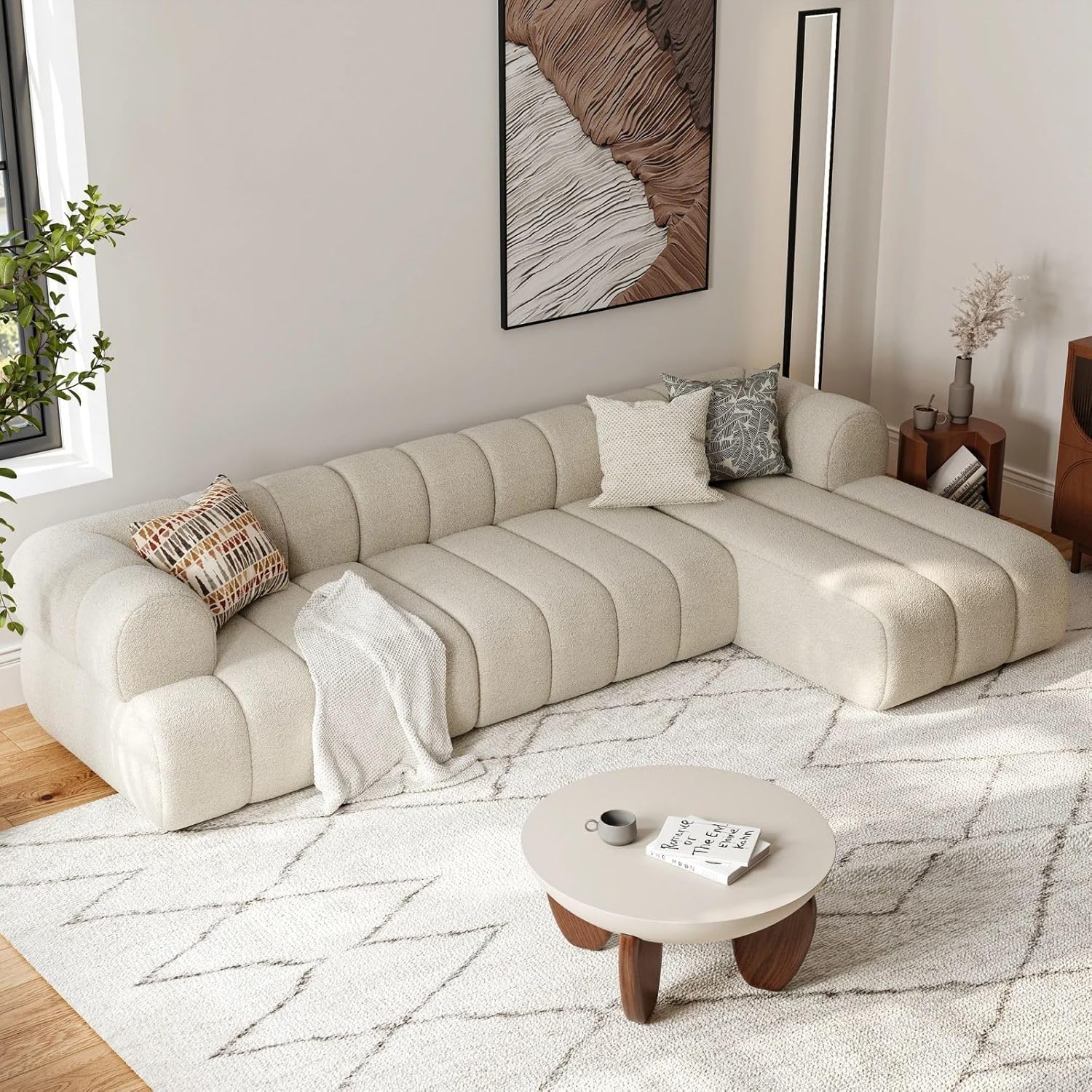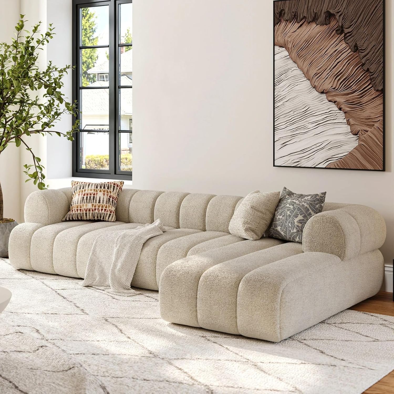 homary 118" Modular 3-Piece Boucle Sectional Sofa with Chaise – Channel Tufted Modern L-Shaped Couch with High-Density Foam, Easy Assembly