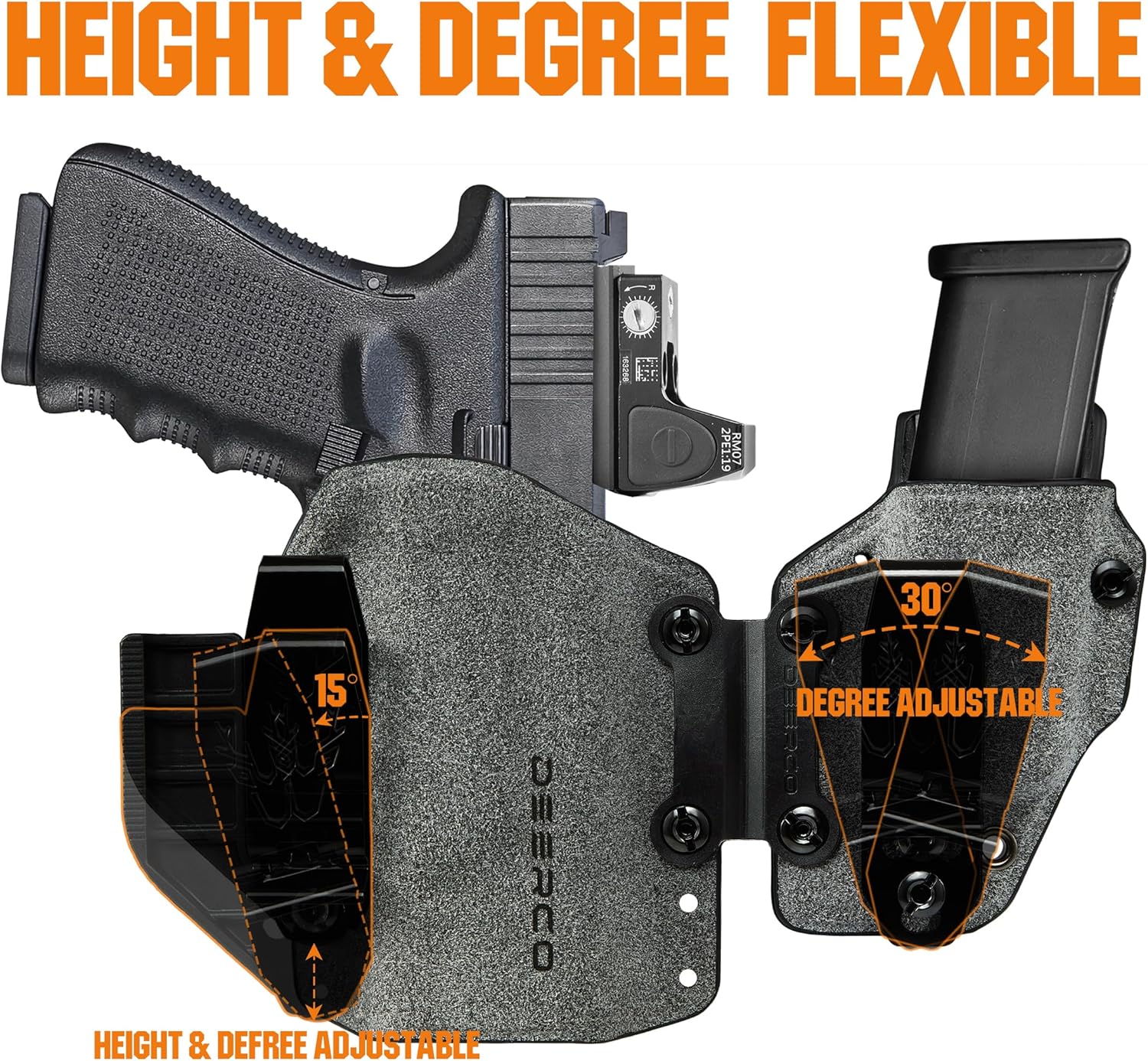 [Versatile Carry Options] Concealed Carry Holster for G19 with removable mag pouch, offering IWB, AIWB & OWB compatibility. Easily switch between inside-the-waistband (G19 Holster), appendix carry, or outside-the-waistband setups with modular attachments—perfect for all-day comfort and tactical flexibility.