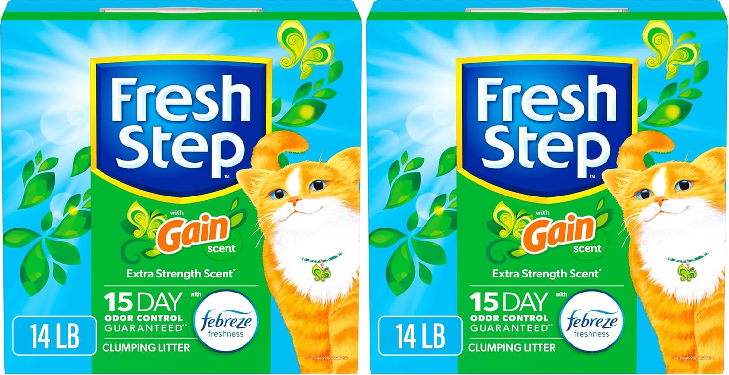 Fresh Step Clumping Cat Litter with Febreze Gain Scent, Long Lasting Odor Control Kitty Litter with Activated Charcoal, Low Dust Formula, 14 lb (Pack of 2)