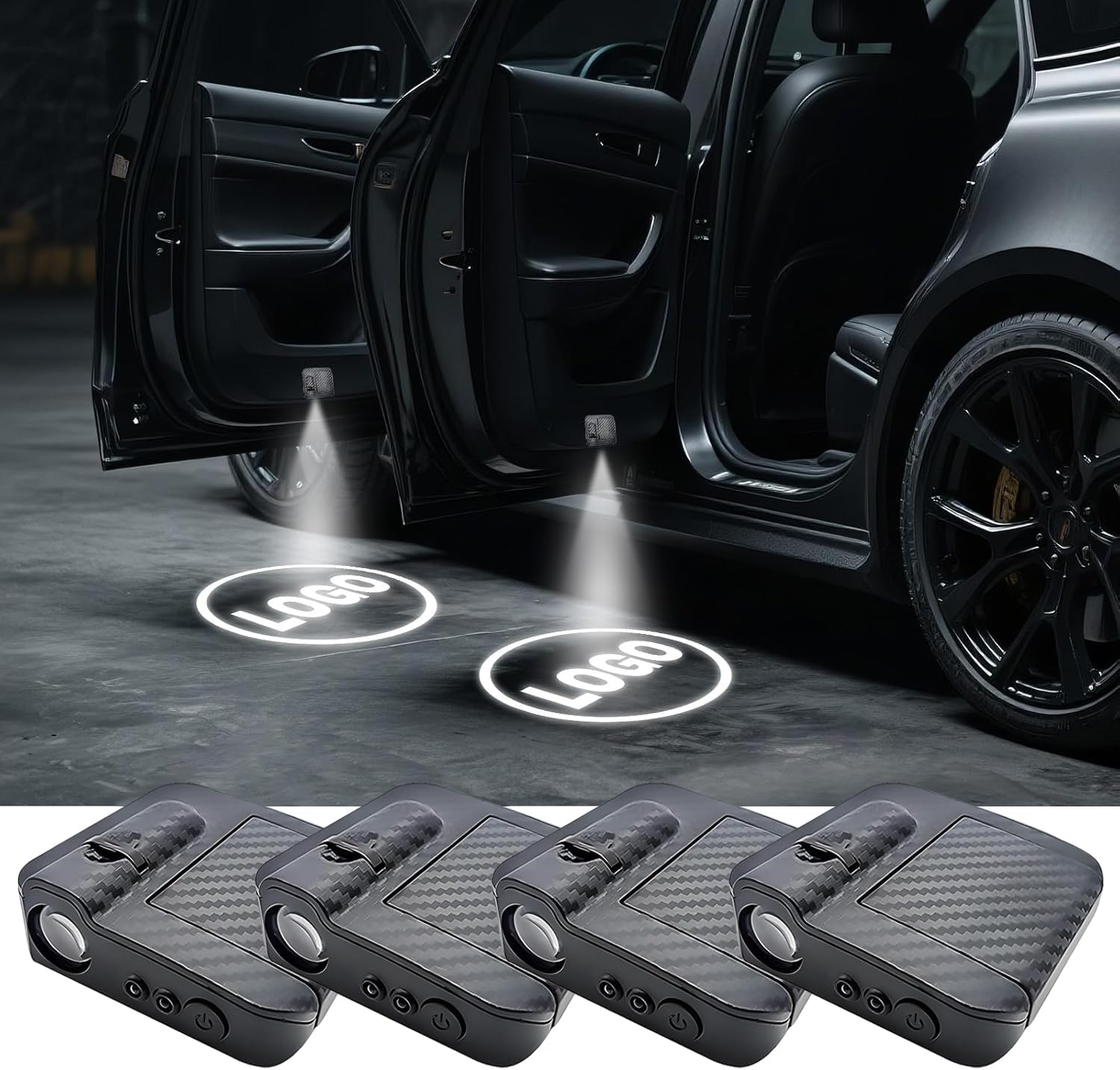 【Package Content】:4*Customized door light logo, 2*plastic install tool, it decorate all 4 doors. What’s more, this item powered by 3pcs AAA batteries (BATTERY NOT INCLUDE).