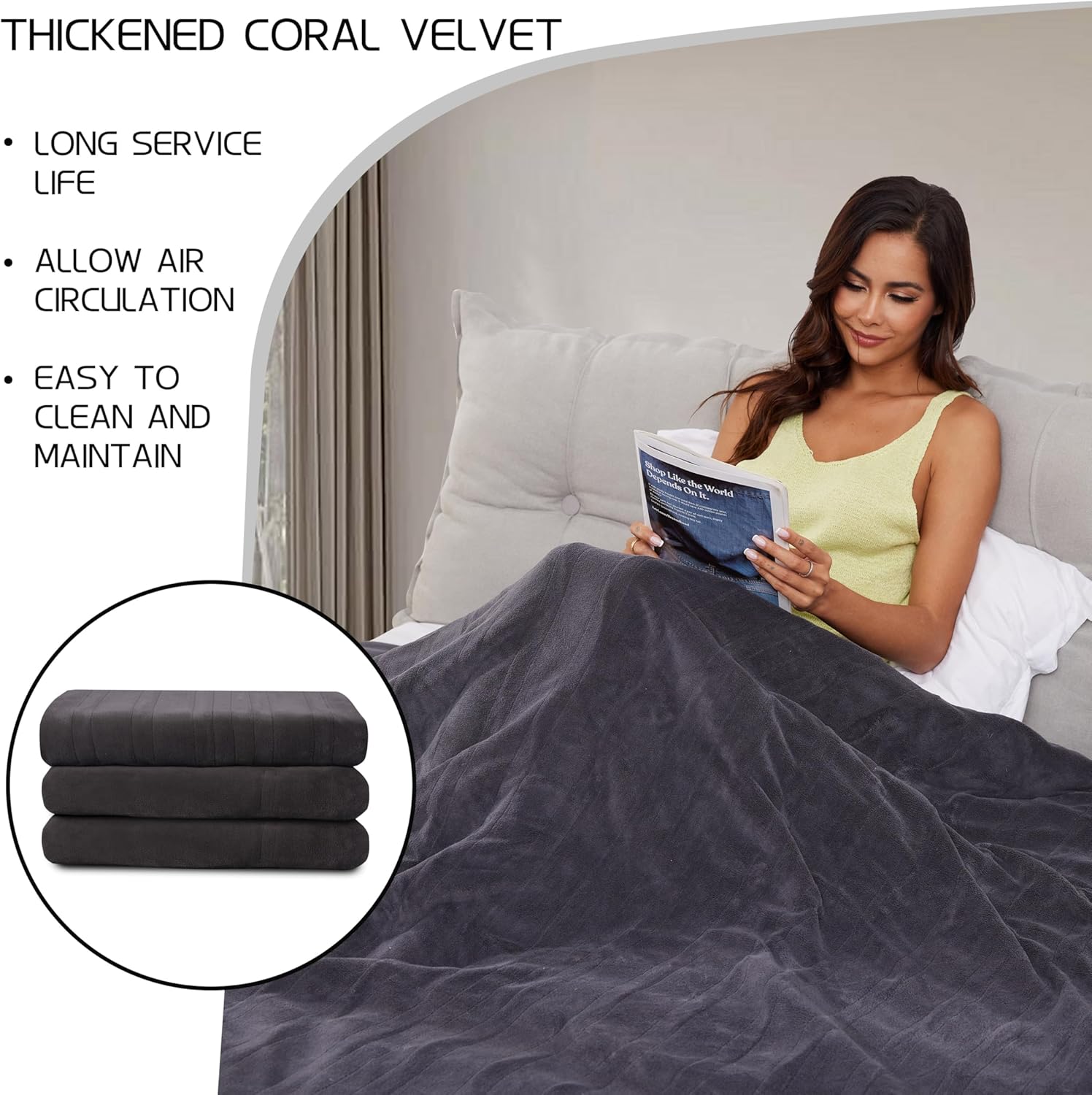 【Reliable Performance】This electric blanket has a built in U shaped heating wire design, Which provides even heating and can quickly reach your desired temperature, Bringing you warmth in this cold winter