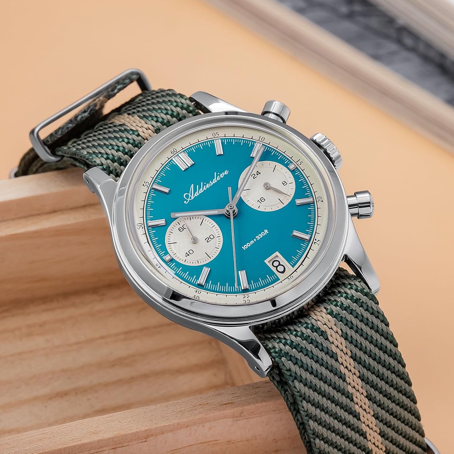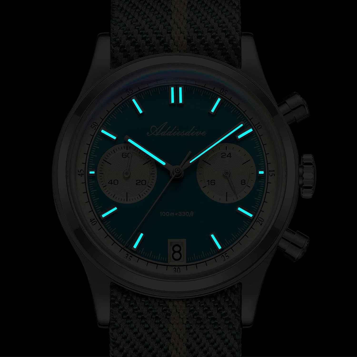 ADDIESDIVE 38 MM Quartz Chronograph Watch Waterproof 100 M BGW9 Luminous 316L Stainless Steel Panda Dial Sport Watches for Men Nylon Strap