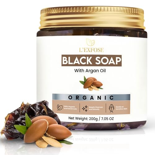 L’Exfose Moroccan Black Soap Hammam with Argan Oil – 100% Natural Black Beldi Soap for Deep Cleansing, Exfoliation & Detox – Traditional Moroccan body scrub – Vegan, Organic, Made in Morocco