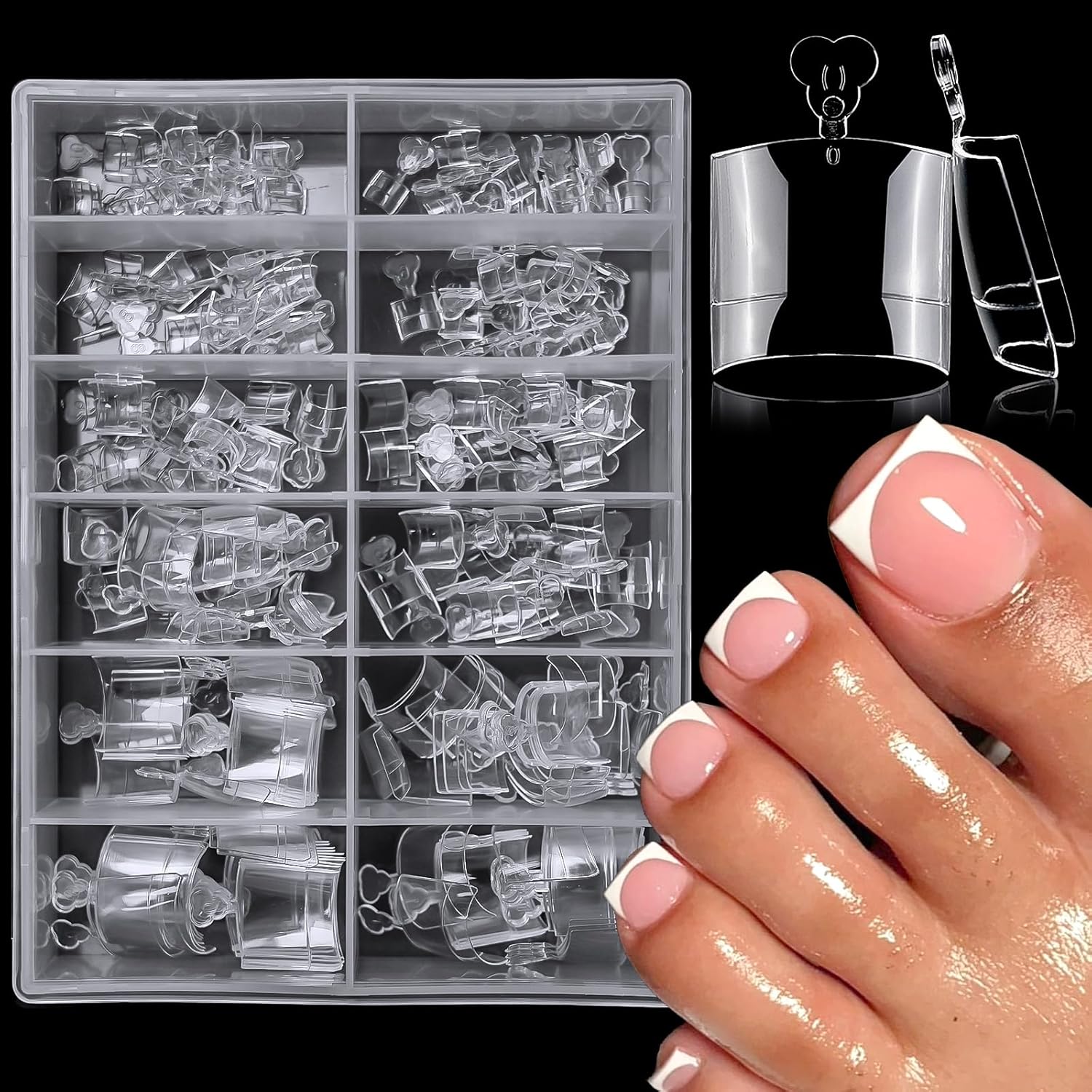 💅Soft Gel Fake Toenail Kit: gel toe nail kit includes 240pc short square shaped clear press on toenails,soft gel toenail tips pack is a easy at home toenail set for nail salon and nail beginner or lover. Clear press on nails for toes help you diy stylish feet pedicure within few minutes.Clear toenail tips offer gel clear surface, you can apply toe nail tips without file,and apply nail polish without leaving brush marks, gel toe nail tips make pedicure diy effortless.Half cover pre-file fake toe nail tips are friendly to nail starter and nail techs who lover manicure.