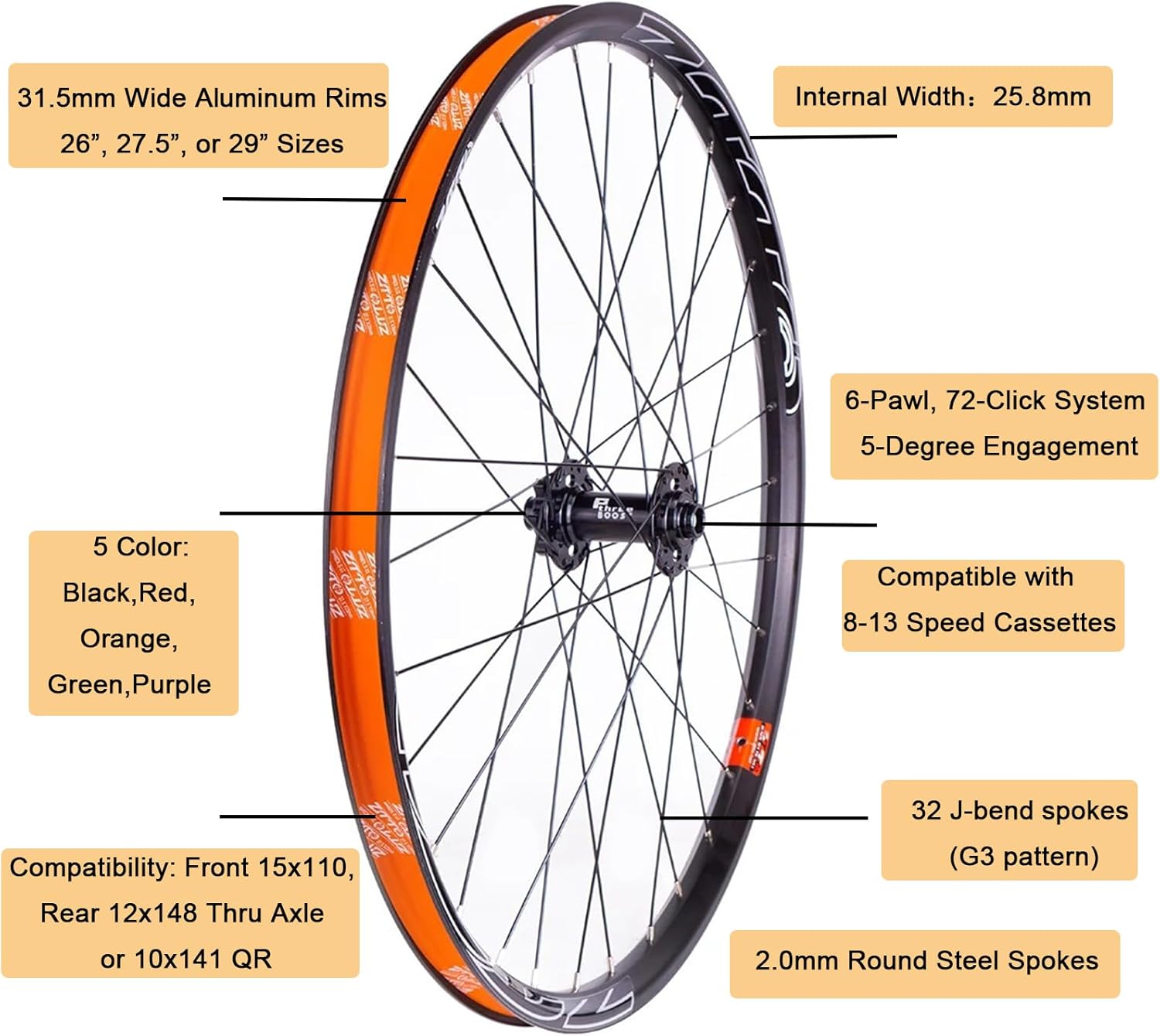 ZTTO 29" /27"/26" Mountain Bike Wheelset HG/XD/MS Standard, Front & Back MTB Wheelset with 148 Boost Hub 148 Thru Axle 141 QR 6 Pawls, Durable Bicycle Wheels for MTB, P3 Boost