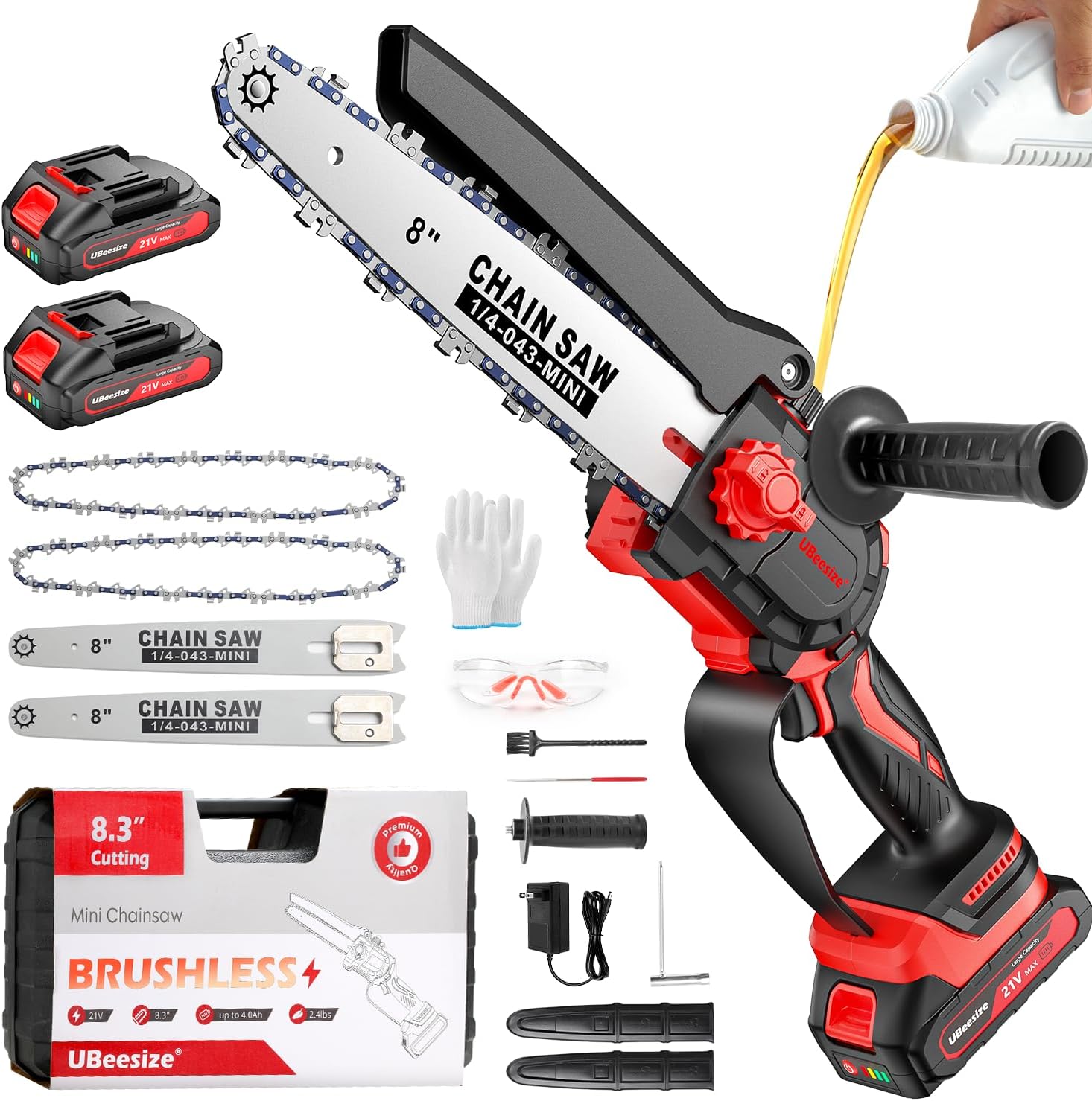【Exclusive Upgrade: 8-Inch Brushless Power】Ordinary mini chainsaws stall, overheat, and wear out fast — the UBeesize 8-Inch Mini Chainsaw is different. Powered by a high-efficiency brushless motor, it delivers stronger cutting power, smoother control, and longer life. Built tough for trimming thick branches and storm cleanup, yet lightweight and easy to handle for everyday garden care, it’s a reliable tool for everyone