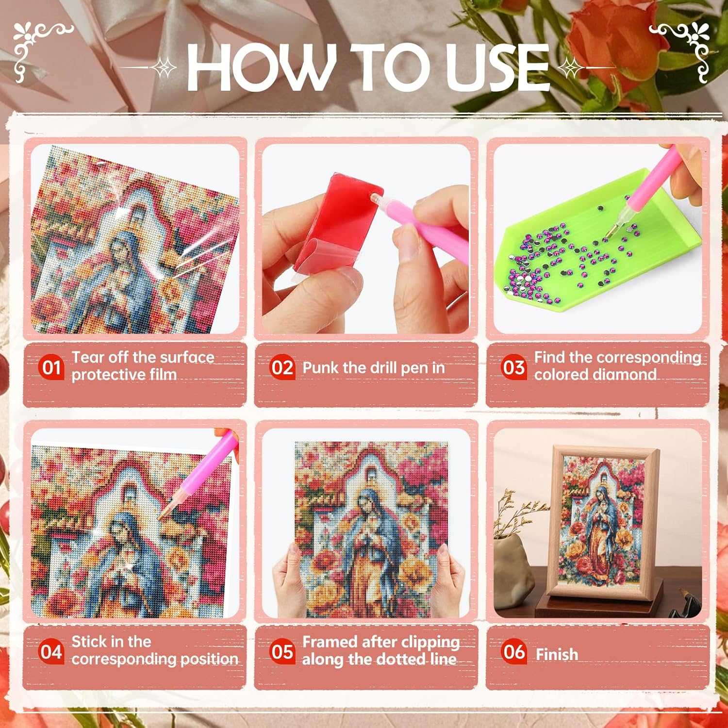 Más información para tu compra de Virgin Mary Diamond Art Kit...