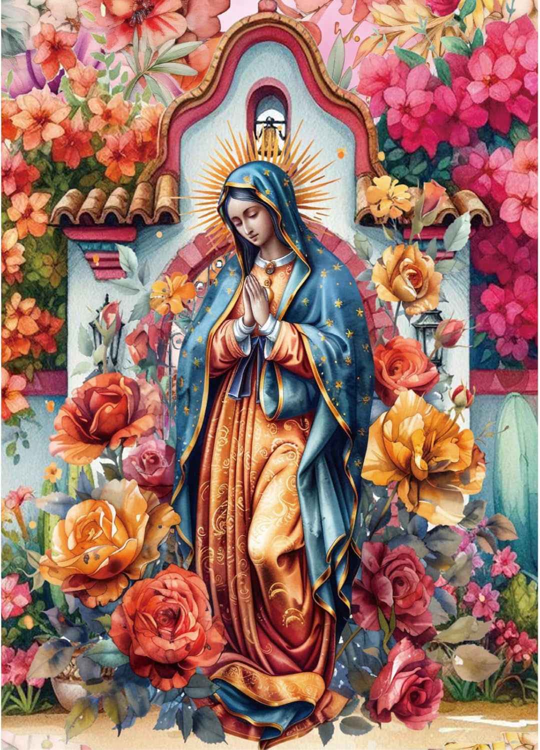 Virgin Mary Diamond Art Kits for Adults - 1PC Christian Diamond Painting with Flowers Design, DIY 5D Full Drill Religion Gem Art Craft for Beginners Home Wall Decor 9.84 x 13.7 Inches