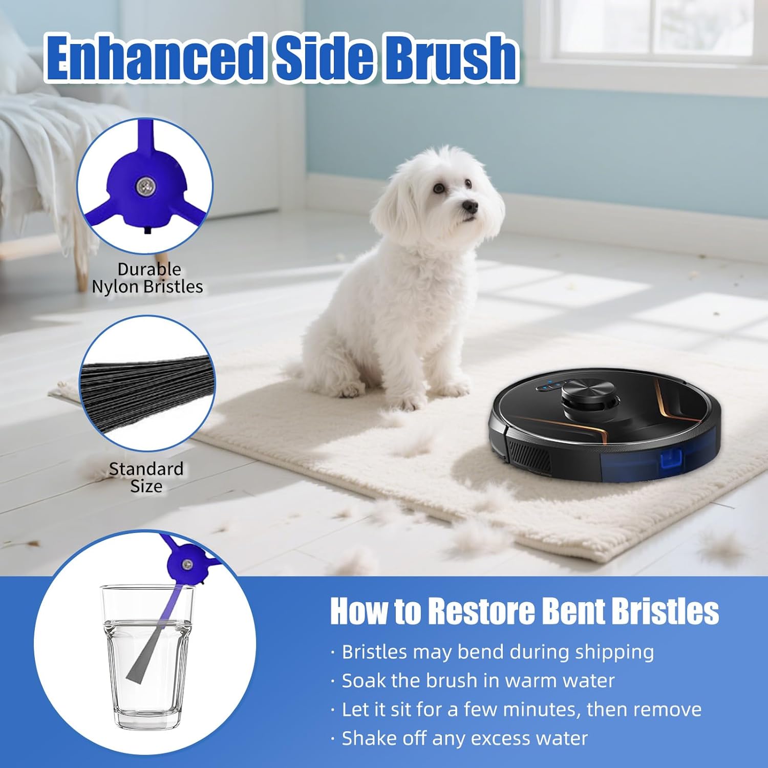 Durable & Reliable Performance: Includes 2 roller brushes, 8 side brushes, 6 HEPA Filters, 2 Mop pads, 1 Cleaning Brush & 1 Screwdriver made of durable materials to ensure thorough cleaning on carpets and hard floors, extending the life of your vacuum.