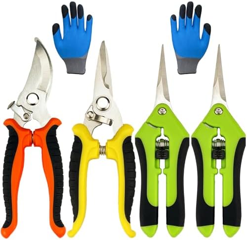 Pruning Shears, 5 Pack Garden Shears with Gardening gloves, Clippers Handheld, Stainless Steel Garden Snips, Lengnoyp Pruners for Gardening