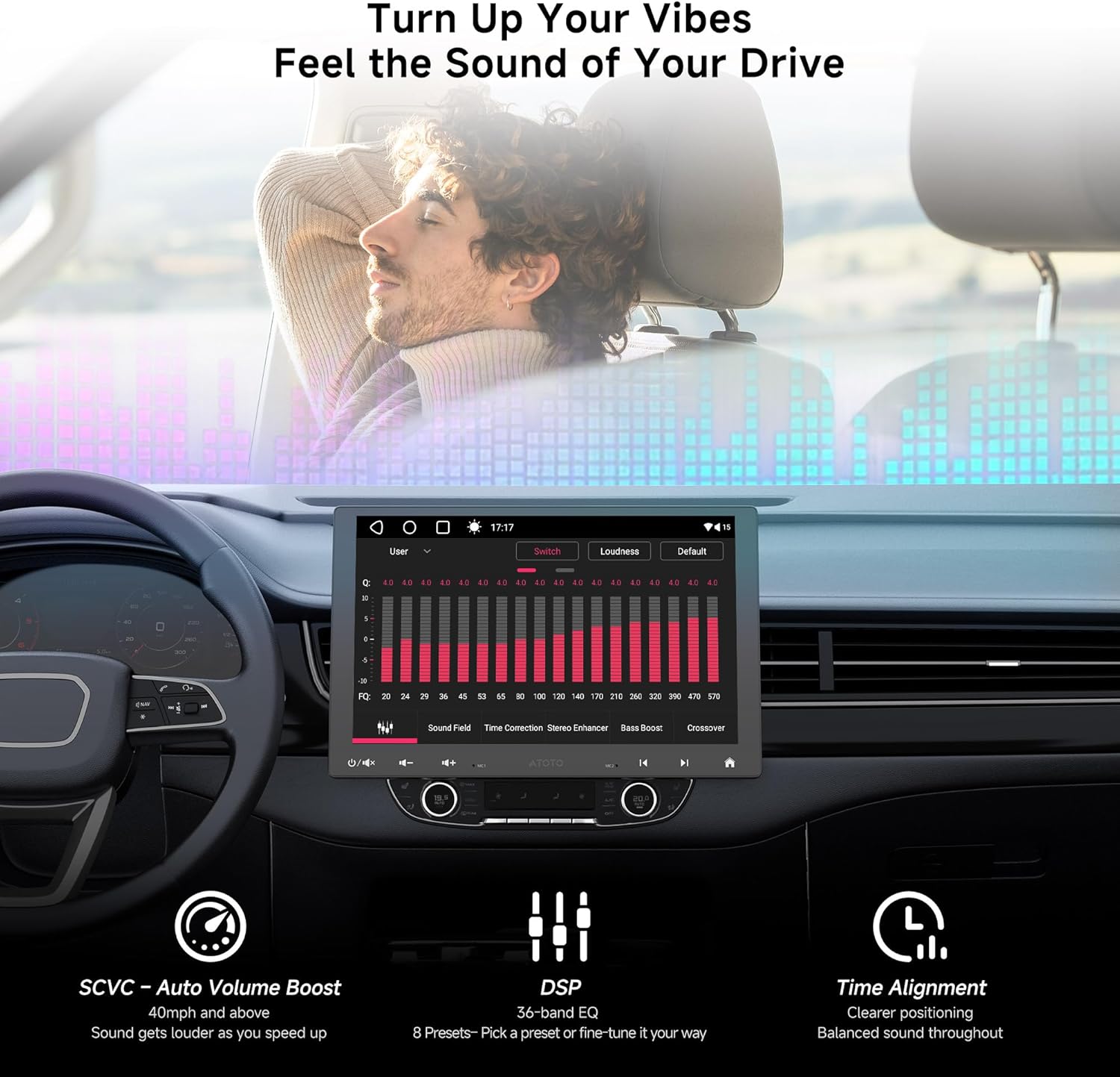 Dive Into Balanced Sound: DSP and 36-band EQ let you shape audio to fit your space and style. Time alignment ensures sound hits just right, while SCVC reduces road noise. Built-in amp and crossover deliver clear highs, deep lows, and strong output