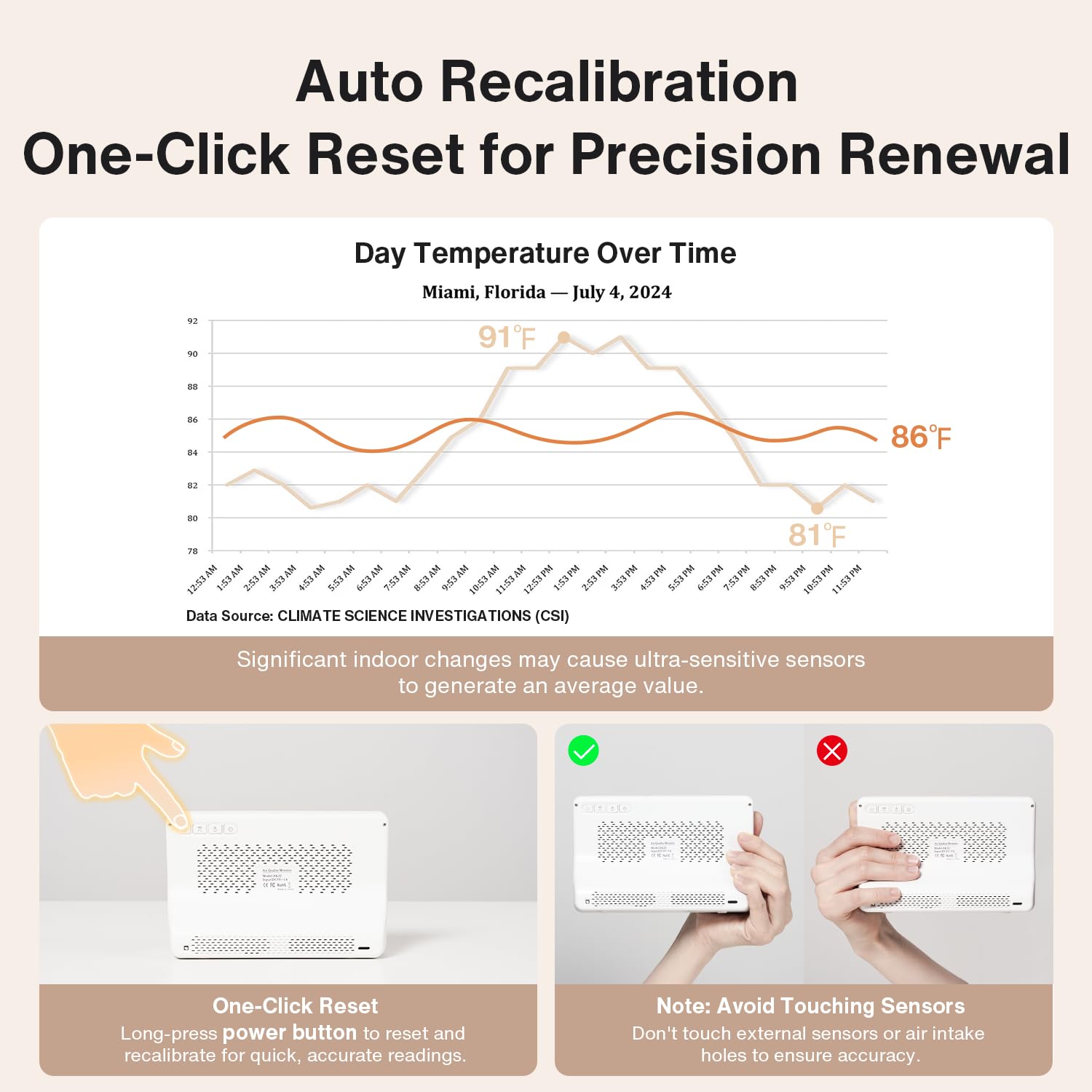 【External High-Precision Sensors with 0.001 Accuracy】Equipped with advanced external high-precision sensors, this device delivers unmatched accuracy (0.001 units) by directly sampling the air. Its innovative multi-sensor array and enhanced airflow design detect even the slightest environmental changes, allowing for instant response and optimal safety. (*Note: Avoid touching the sensors or exposing them to perfumes/strong odors to maintain accuracy.)