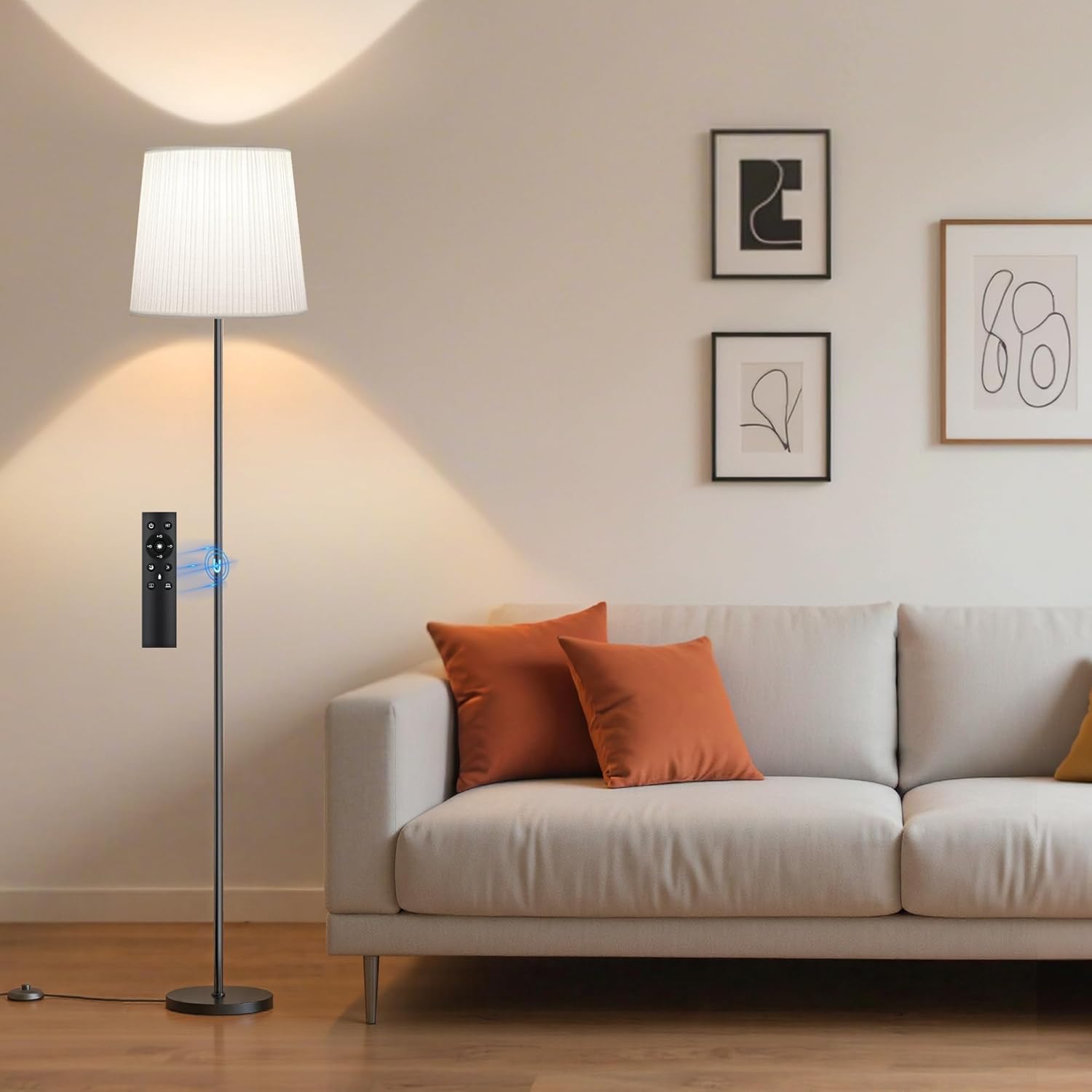 【Adjustable Color Temp (3000K-6000K)】 Steplessly switch our standing lamp between warm yellow (3000K) and white daylight (6000K) by remote control – perfect for reading, working, relaxing, or setting the mood in any space.