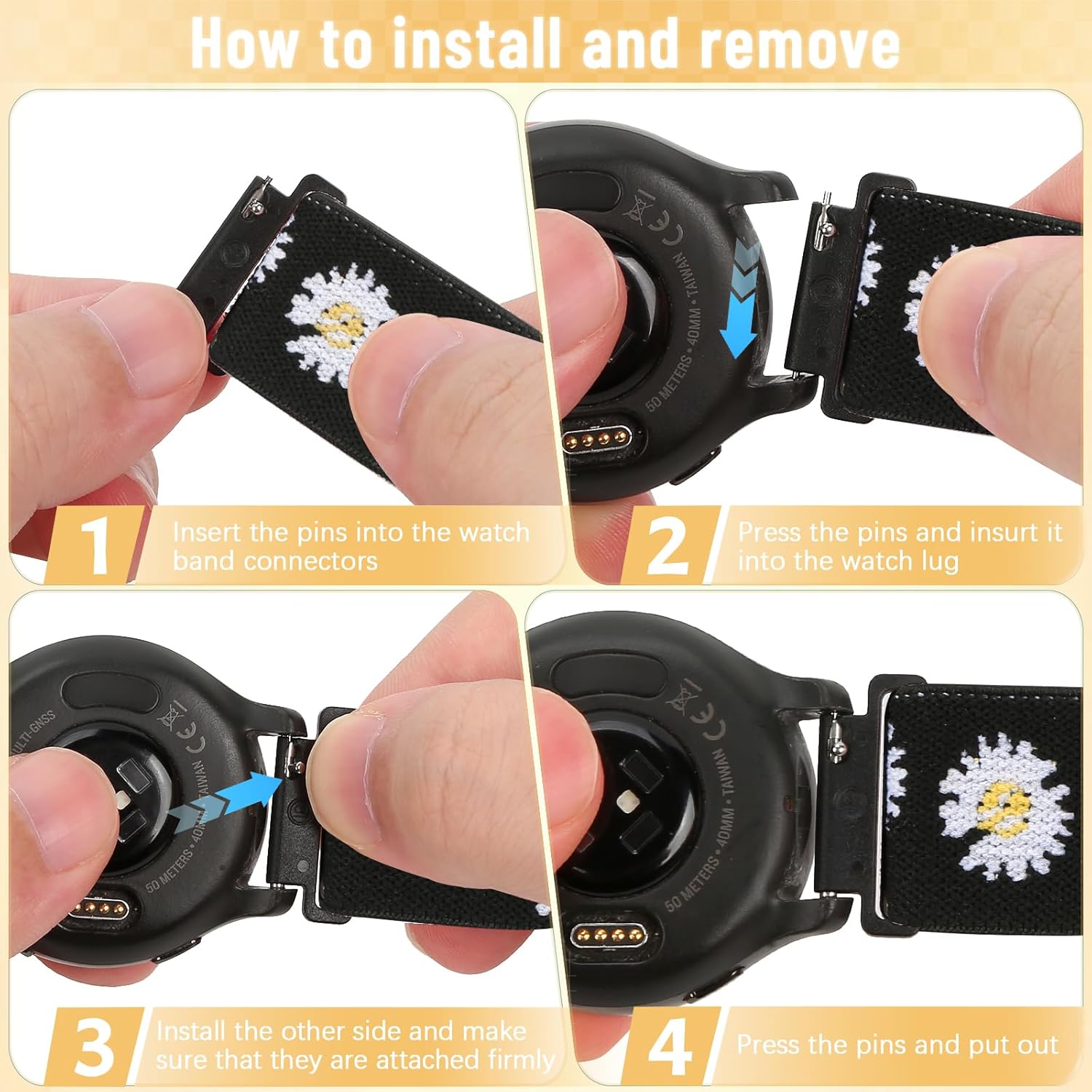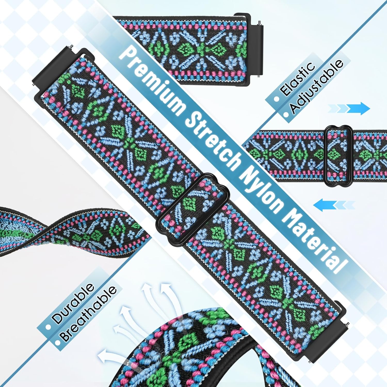 Elastic Quick Release 18mm Watch Bands Compatible with Garmin Venu 3S/Venu 2S/Vivoactive 4S/Vivomove 3S/Forerunner 255S/255S Music/Forerunner 265S, Adjustable Stretchy Nylon Loop Replacement Straps