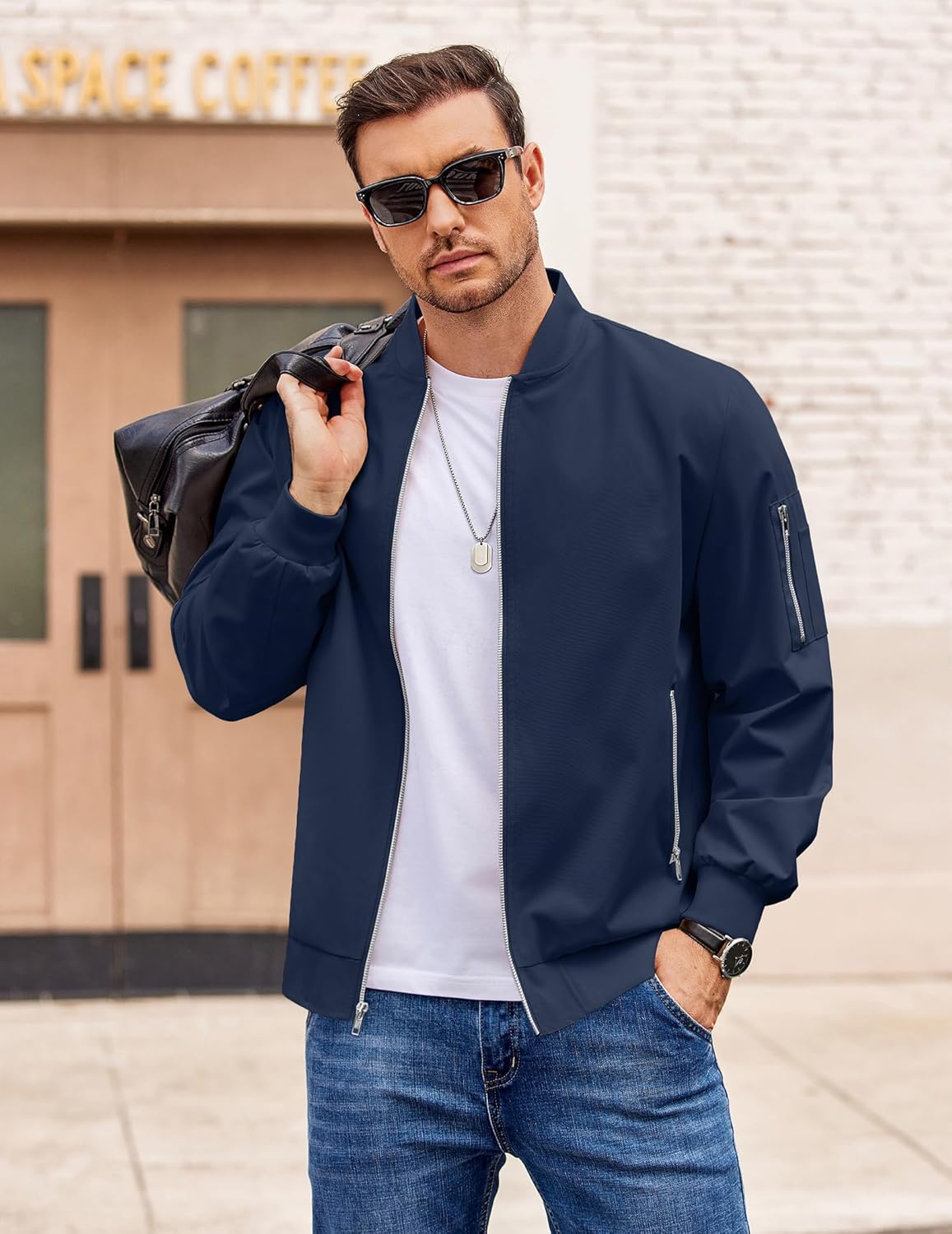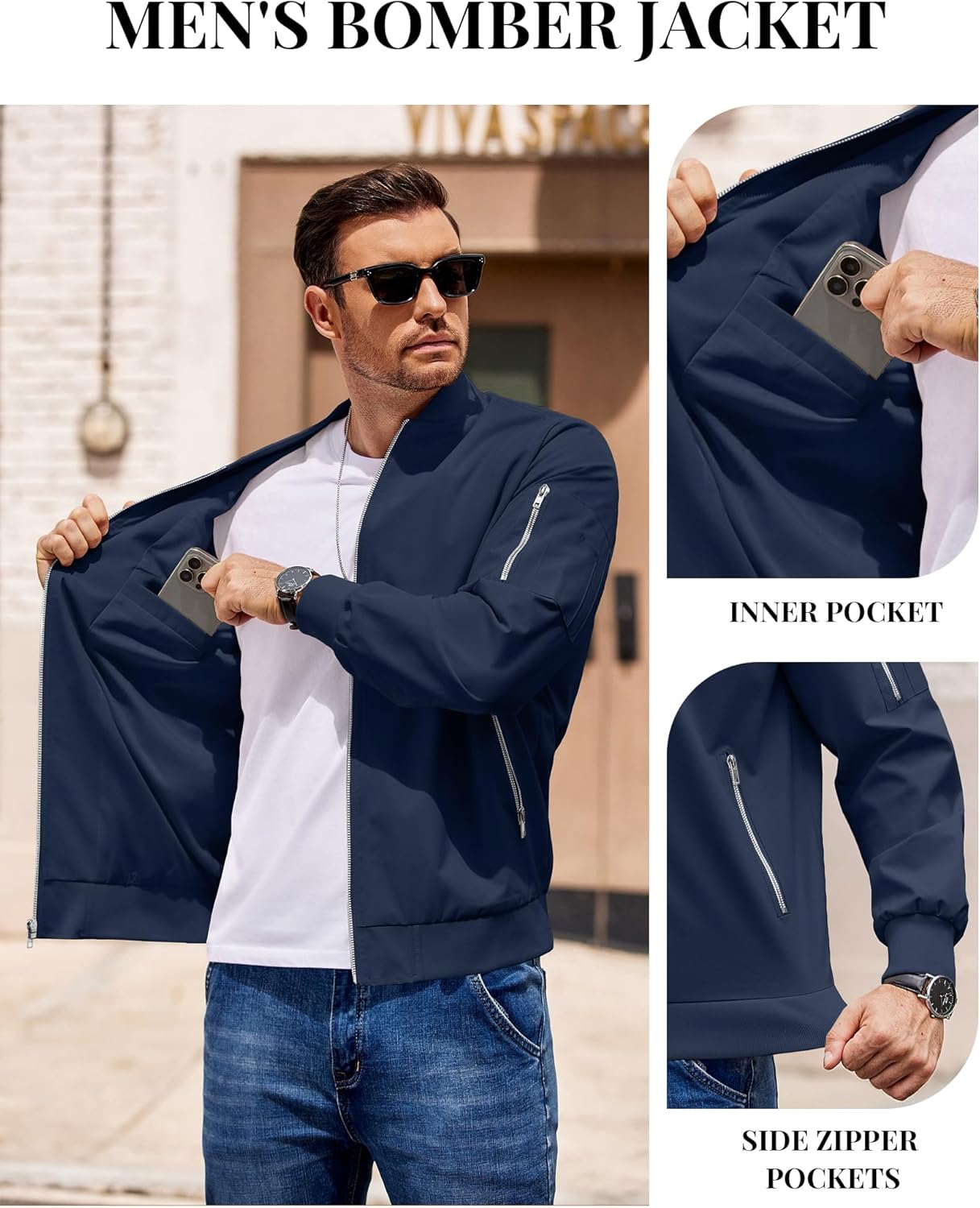 COOFANDY Men Bomber Jacket Lightweight Casual Windbreaker Zip Up Coat Fashion Stylish Fall Jackets with Pocket