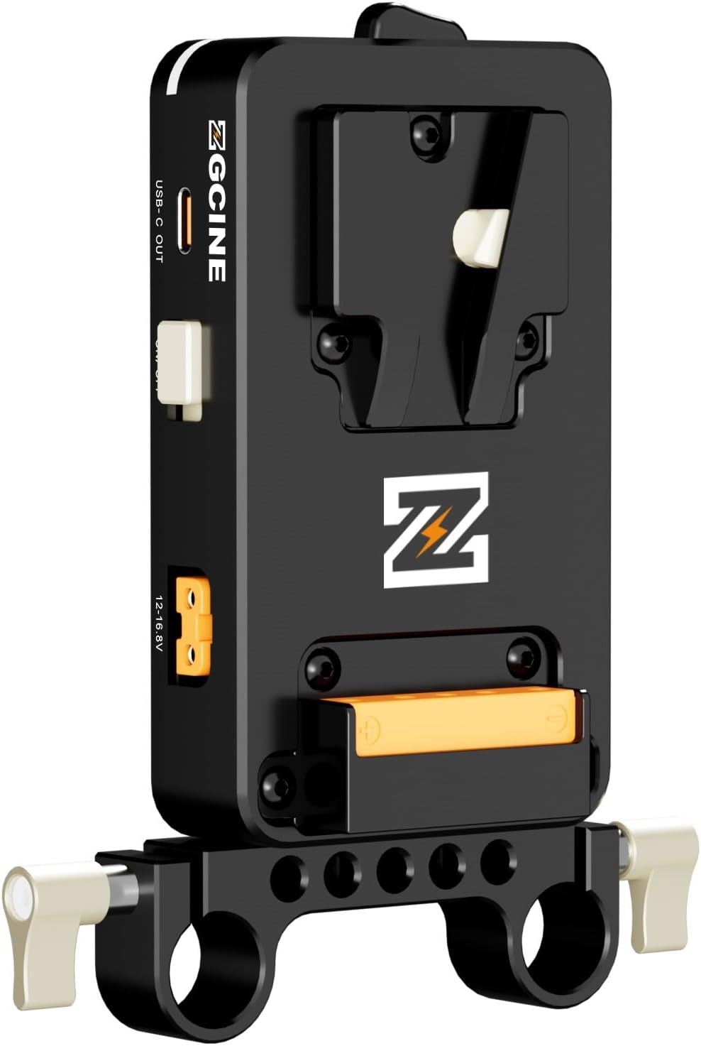 ZGCINE VM-VP3 V-Mount Battery Plate with USB-C PD Output, 3 D-tap Outputs,15mm Rod Clamp, One-Key Power Control for Sony FX3, Canon EOS R5/R6/R7/R10, Panasonic LUMIX GH6/S5 II, a7S III/a7 IV etc.