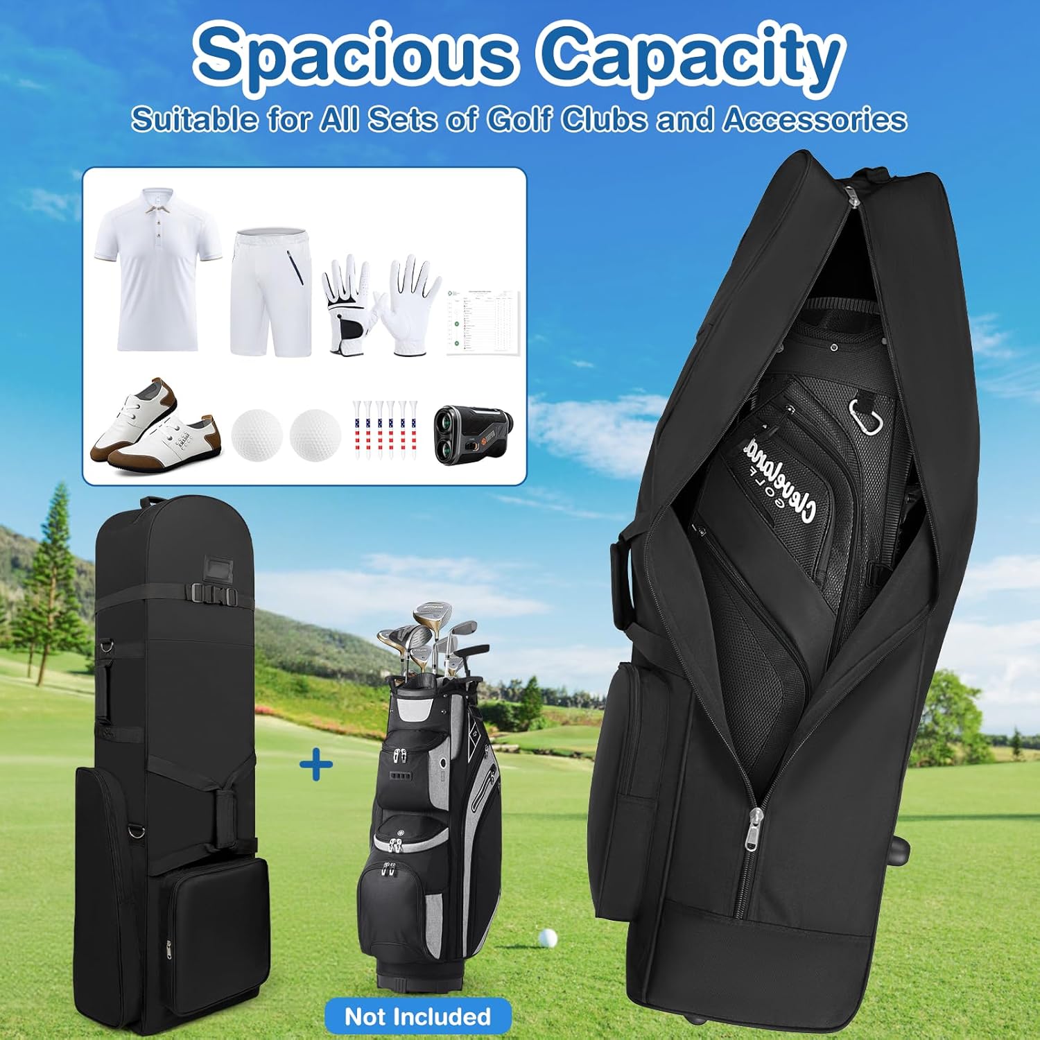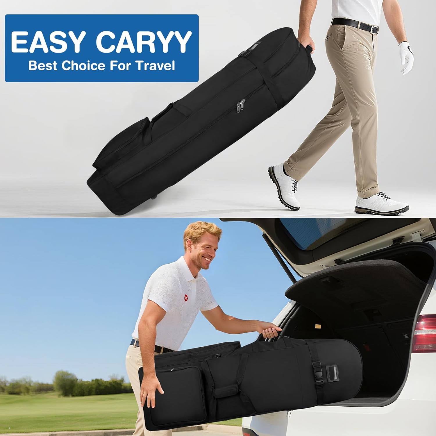 Golf Travel Bags for Airlines - 900D Heavy Duty Polyester Oxford Travel Golf Bag with Wheels, Golf Club Bag Cover Lightweight Soft Wear-Resistant Universal Size, Black