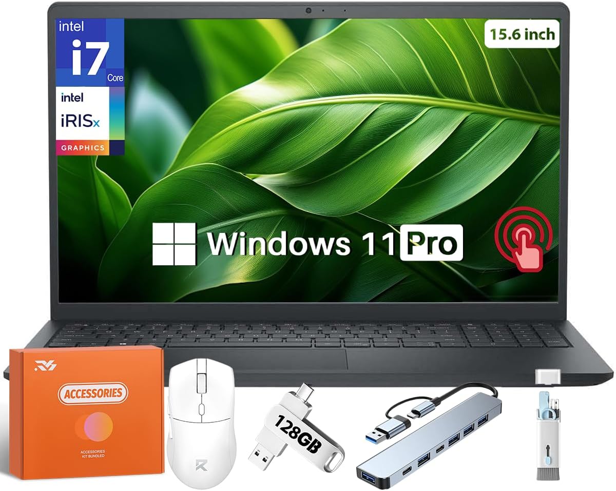 Dell inspiron 15 Touchscreen Laptop, Intel i7 1355U CPU(Up to 5.0GHz), Intel Iris Xe Graphics, 15.6" FHD Anti Glare Display, 32 GB RAM, 1 TB SSD, WiFi6, Windows 11 Pro & Copilot-Ai Chat, w/Accessories