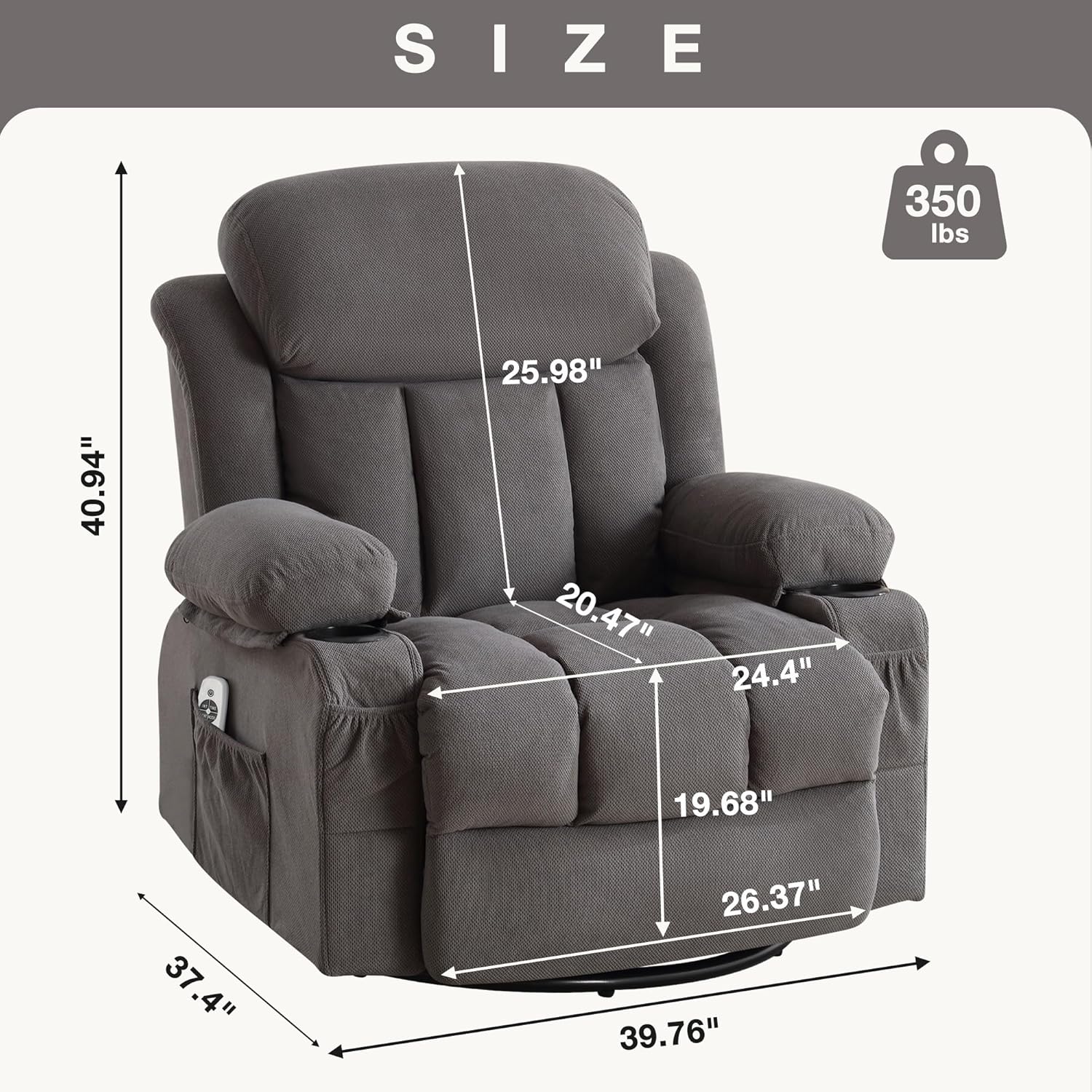 Massage & Lumbar Heat: The power recliner with 4 massage points (back, waist, thighs, legs), with 3 adjustable modes and 3 intensity options and 3 massage duration, to be able to choose the desired massage area, intensity, mode and time according to demand, to eliminate body fatigue. There is also a heating function in the recliner lumbar position, which can promote blood circulation and relax the whole body
