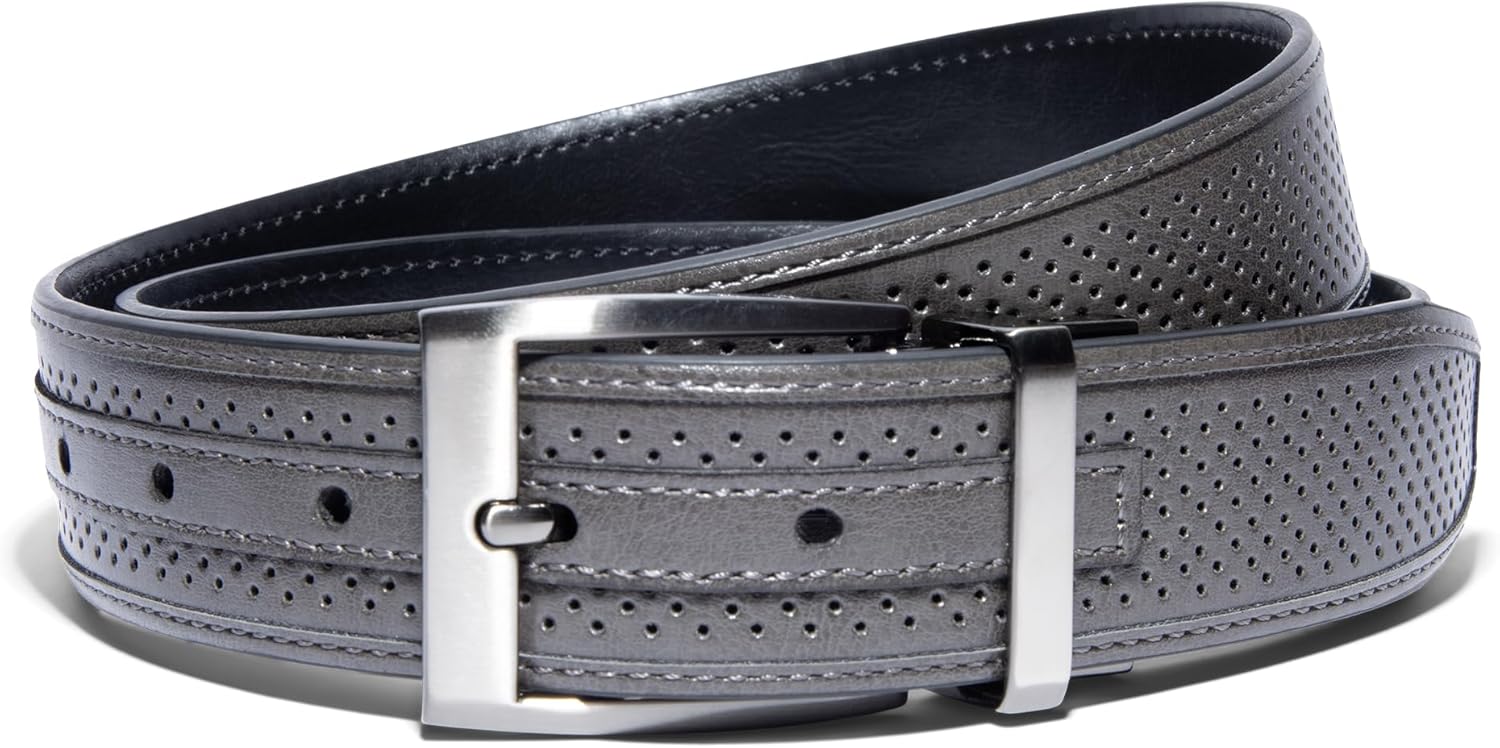 Nike core reversible belt has Nike reversible technology which allows for easy transition from front to back of strap, rotating at base of buckle to provide two unique looks.