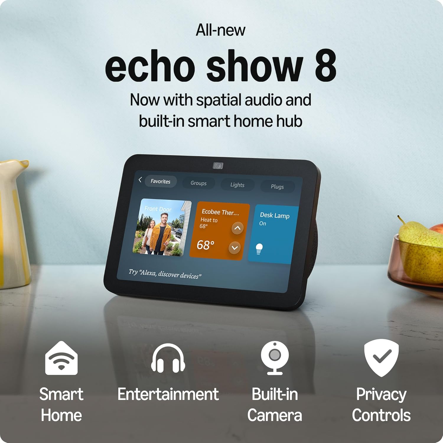 HANDS-FREE SECURITY CONTROL: "Alexa, show me the front door" gives you instant visual access to your doorway on the Echo Show 8's vivid screen, perfect while cooking, cleaning, or relaxing.