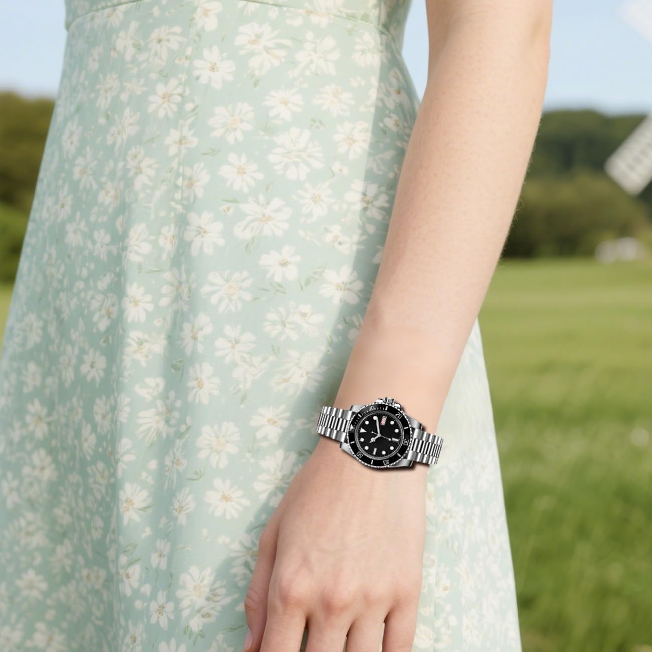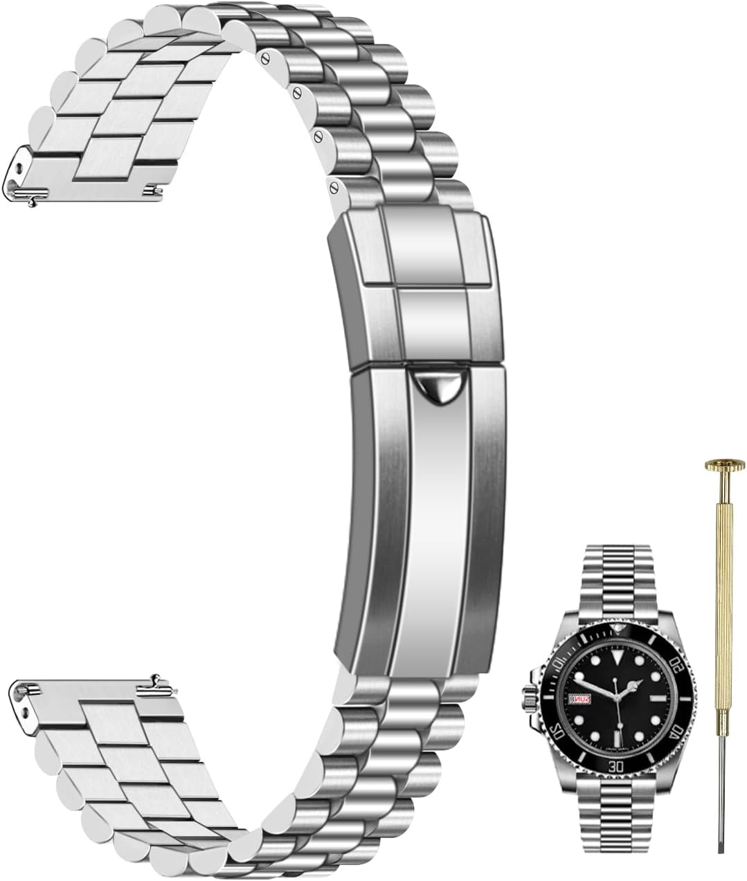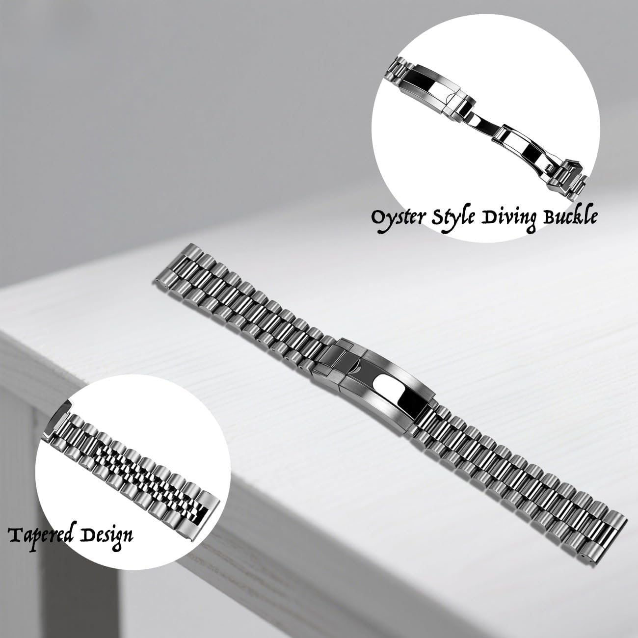 Quick Release 20mm Stainless Steel Watch Band for Men Women Screw-in Metal Watch Band 3-Beads Tapered Watch Bracelet Replacement Strap with Diving Watch Buckle Sliver