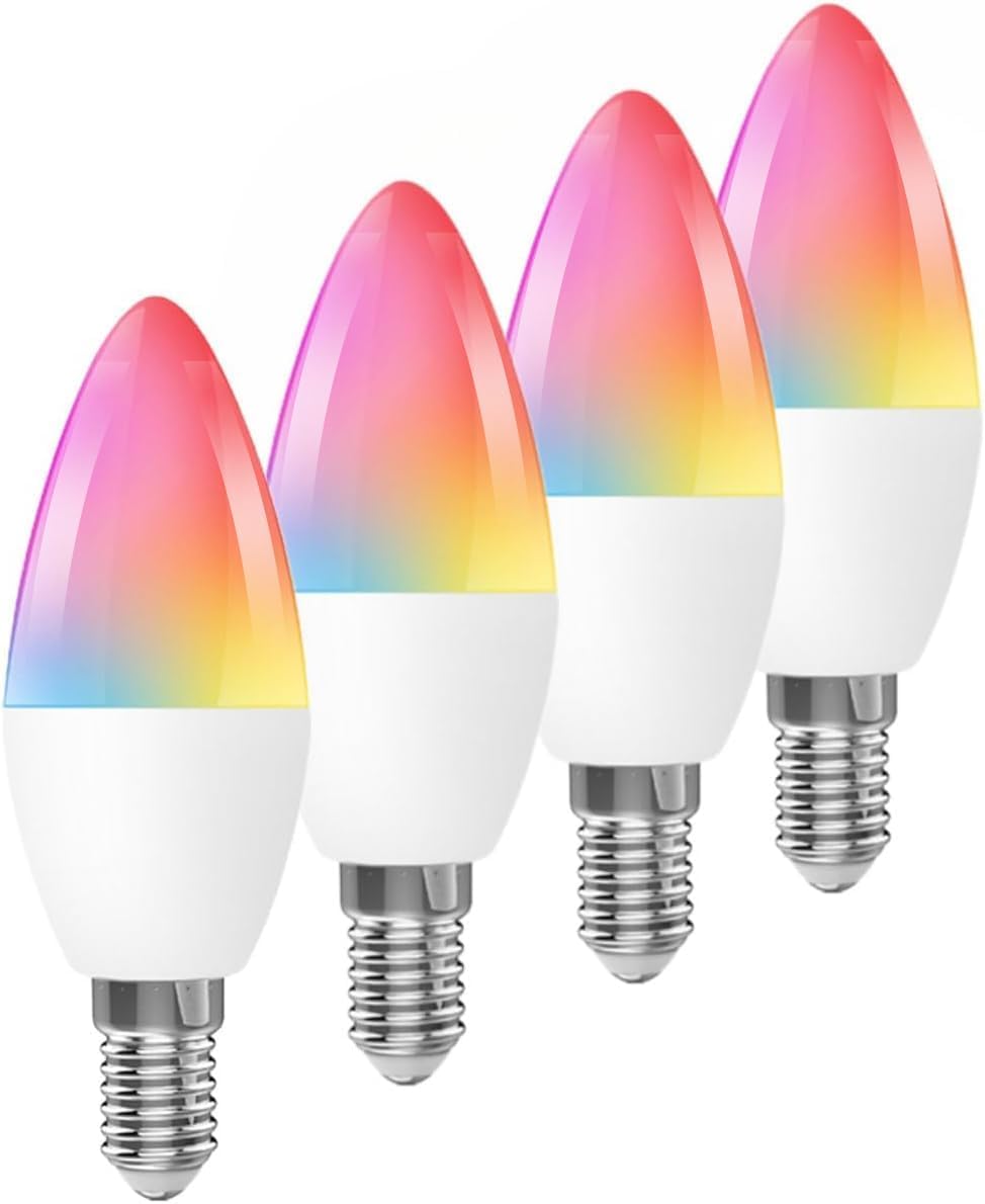 C37E12 LED Bulb,Wi-Fi Smart LED Light Bulb, Dimmable(3000-6000K), Remote Control,Decorative Candle Lamp for Stage Home Decor, 4Pack