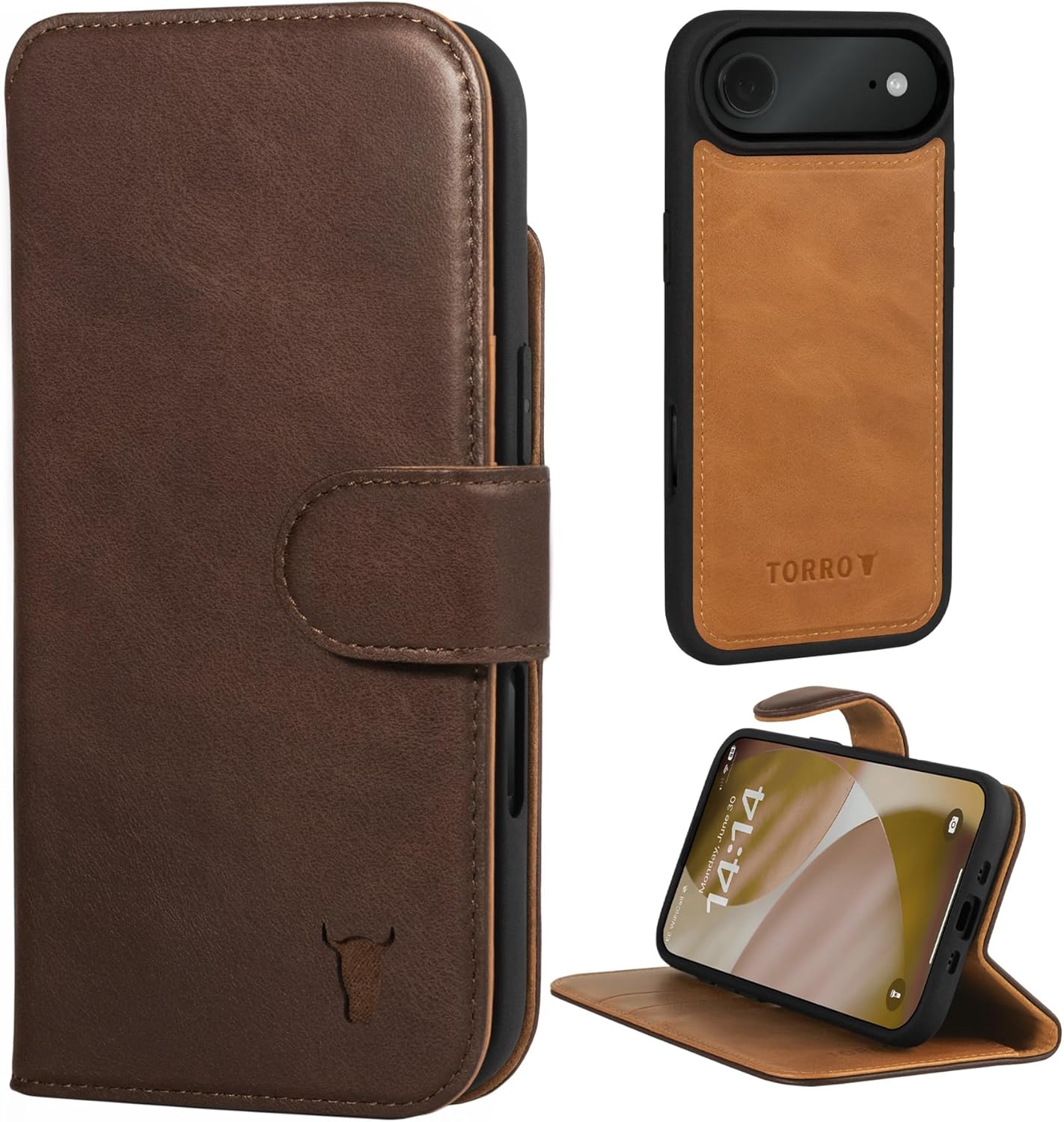TORRO Leather Case Compatible with iPhone Air 6.5” 2025 – Leather Bumper Case with Detachable Wallet Cover with Stand and Card Slots (Compatible with Official MagSafe Chargers) - Dark Brown