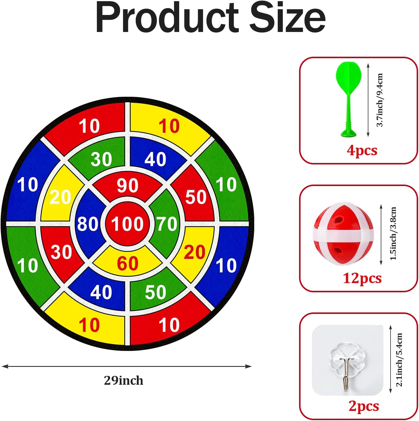 Stocking Stuffers for Kids Teen Boys Girls Christmas Birthday Gifts 29'' Large Dart Board Toys with 12 Sticky Balls & 4 Darts Indoor Outdoor Party Games Toys for Kids 3 4 5 6 7 8 9 10 11 12 Years Old