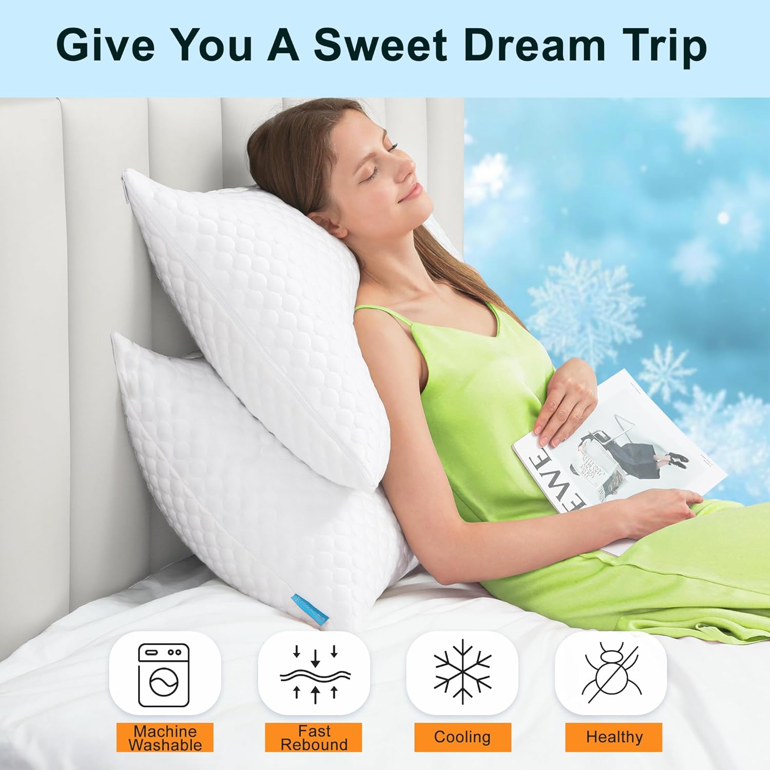 The Cooling Outer Cover - Perfect Temperature, Every Night: With its unique ice silk texture on the outer cover, the UYWO cooling pillow keeps you cooling even in the hottest of nights. The soft texture keeps you comfortably warm on cold nights. No more night sweats or freezing nights - makes every season the perfect sleeping experience.