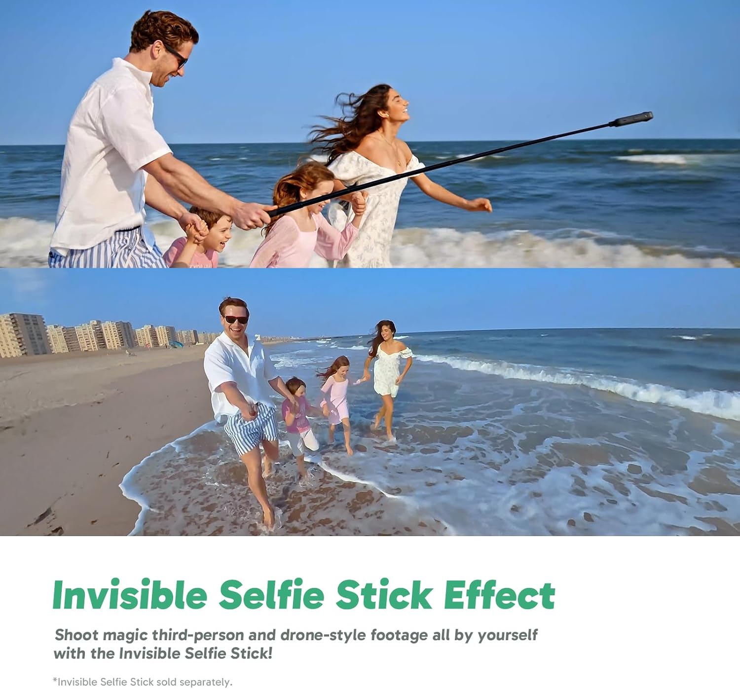 Invisible Selfie Stick Effect: Yes! You can create unbelievable third-person shots on your own! The selfie stick automatically disappears from your footage like magic. No photographer? No problem! Invisible Selfie Stick is not included.