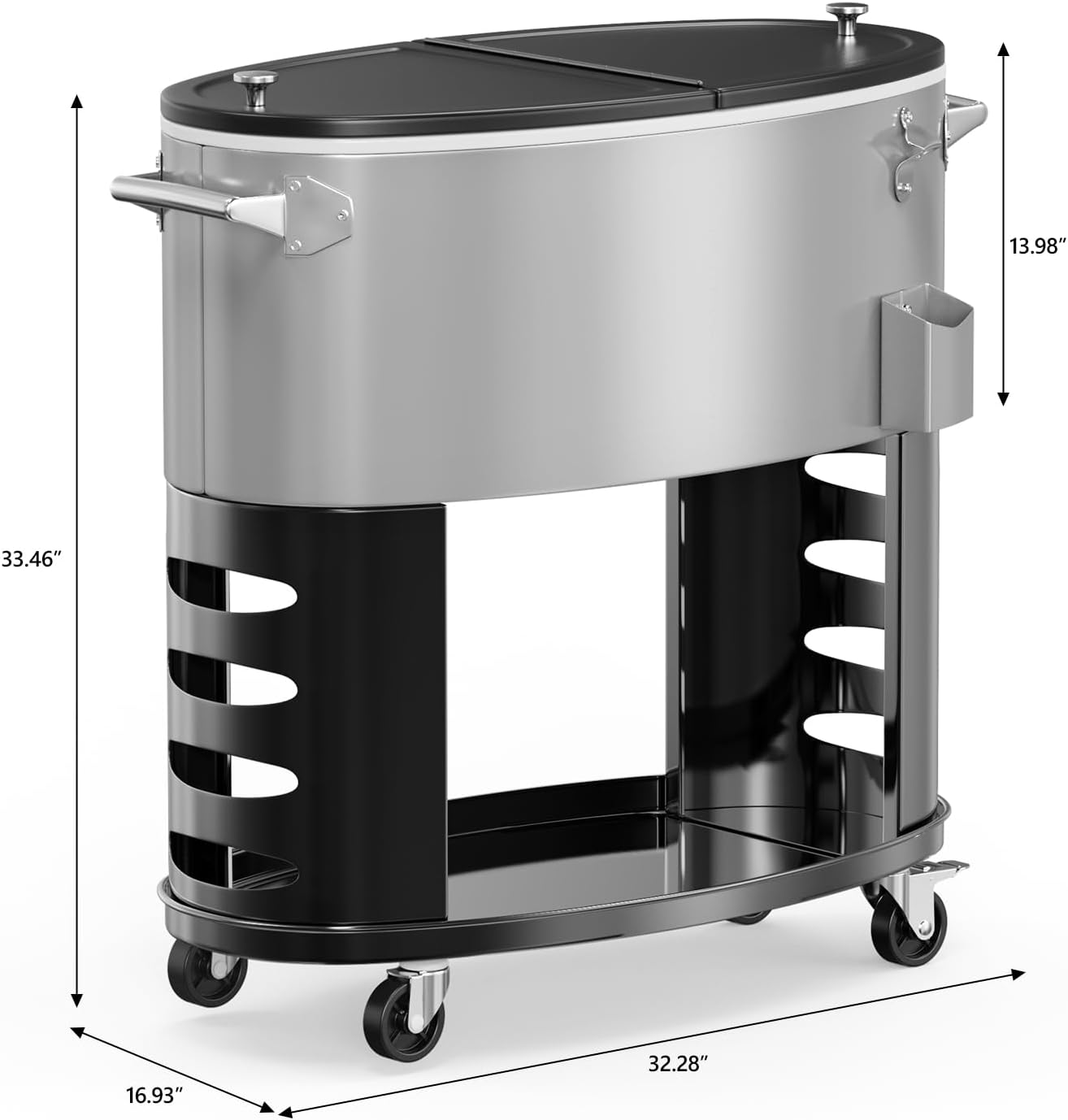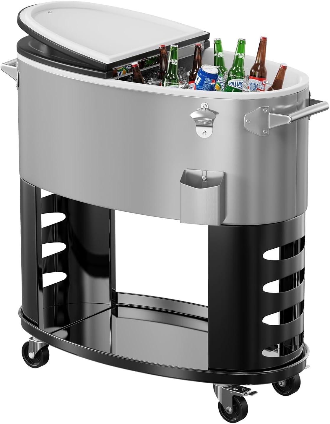 VINGLI Patio Cooler, 70 qt. Rolling Ice Chest on Wheels, Party Bar Drink Cooler Cart with Bottle Opener and Ice Scoop
