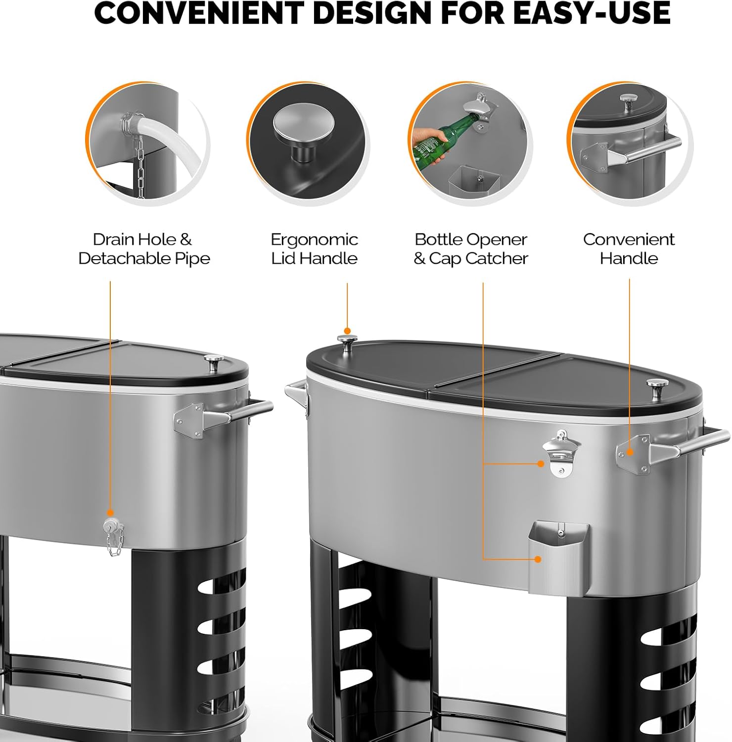 KEEP COOL: Featuring Refrigeration Insulation, This Cooler Cart Will Keep Your Drinks Cool For A Longer Duration, Which Can Reach Keep cool for 48hrs and keep warm for 8hrs