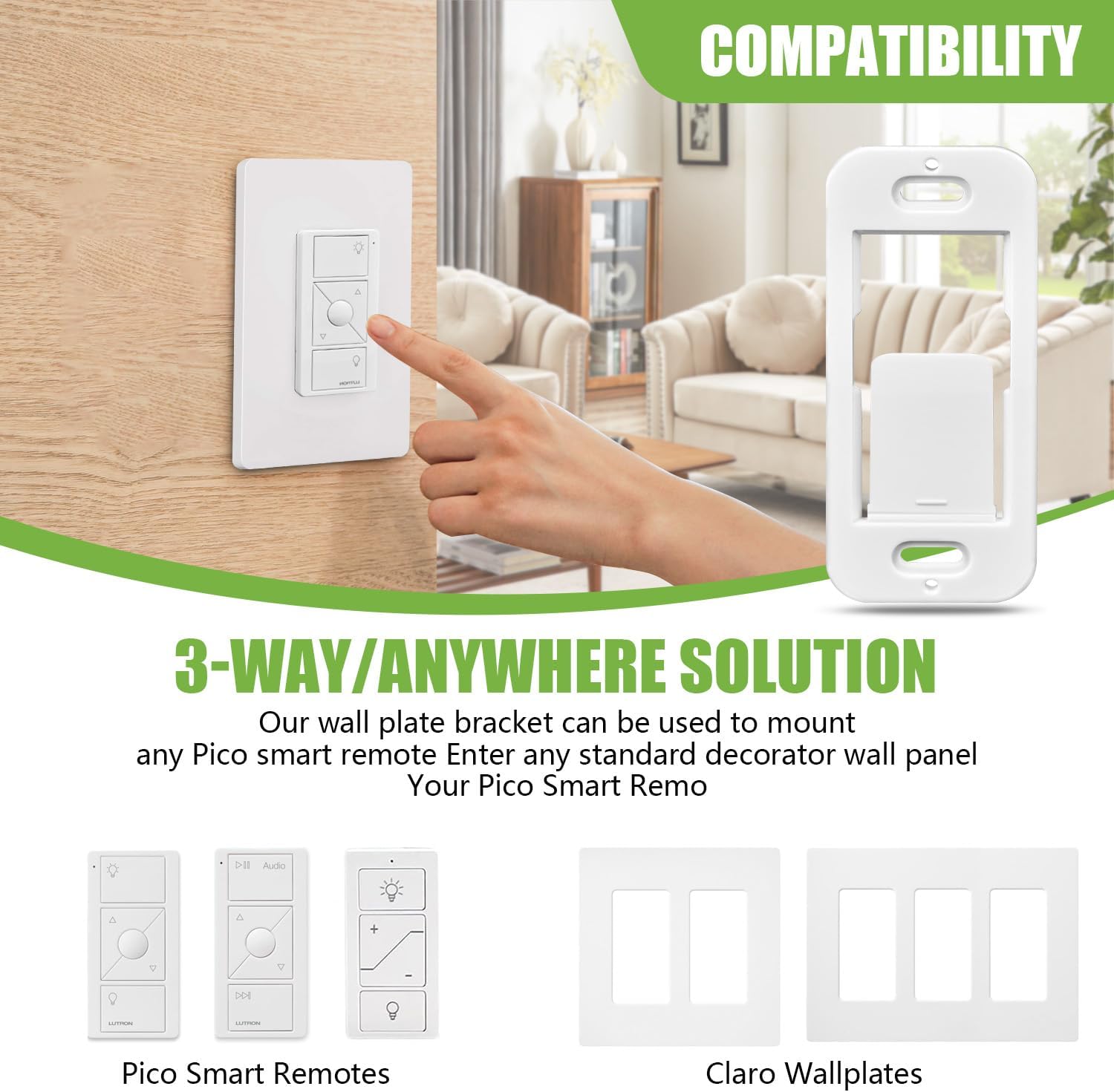 [Smart Living Upgrade]-Elevate your home automation with Our Wallplate Brackets, designed to seamlessly integrate compatible with Lutron Caseta systems into any room. Includes 4-pack wall plate brackets, NOT INCLUDE pico remote and coordinating Claro wallplate.