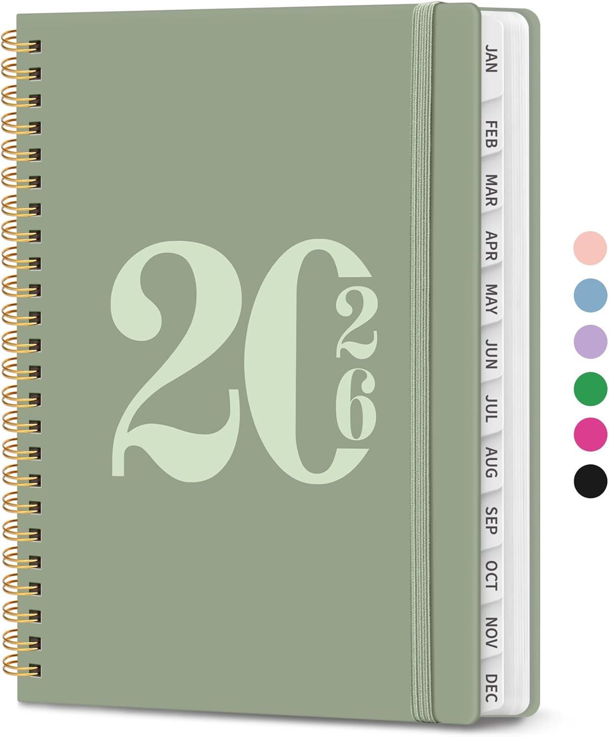 2026 Planner, Weekly and Monthly Calender Planner, Jan 2026 to Dec 2026, Hardcover 2026 Calendar Planner Book with Tabs & Inner Pocket, Office Home School Supplies for Women & Men - A5 (6.3" x 8.5"), Green