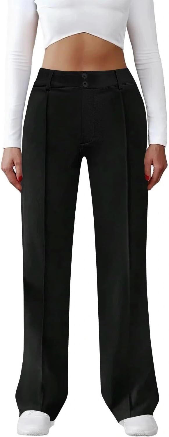 Womens Dress Work Pants Business Casual Office Pull On Trousers High Waist Wide Leg Stretchy Slacks with Pockets