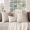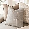Foindtower Pack of 2 Decorative Faux Linen Jacquard Check Throw Pillow Covers Farmhouse Cushion Cover with Grid Textured Accent Pillowcase for Couch Sofa Bed Living Room Home Decor,18×18 Inch,Beige