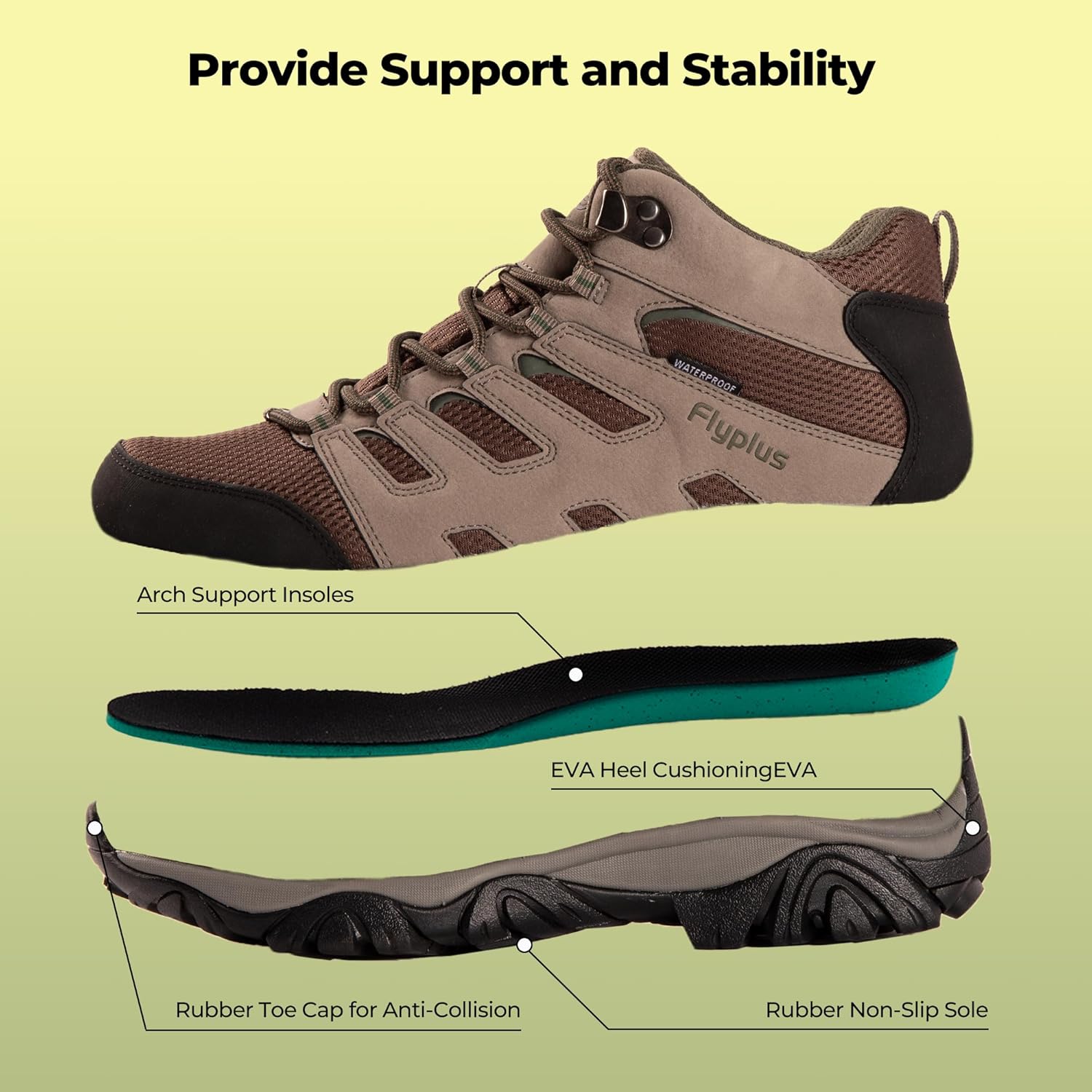 Men’s Waterproof Hiking Boots - Lightweight Slip-Resistant Mid Ankle Support for Outdoor Trekking and Camping