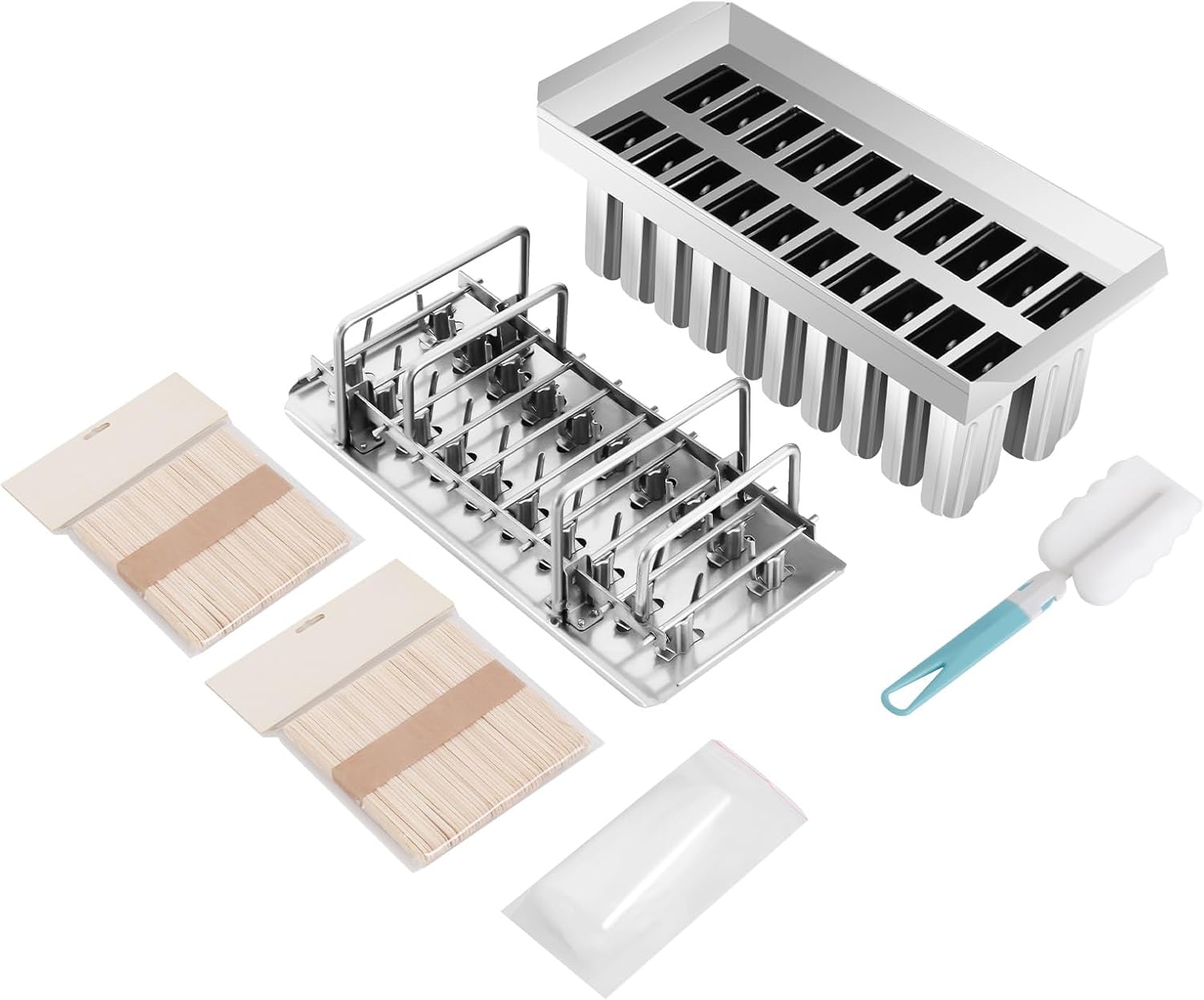 20 Stainless Steel Popsicle Molds, Homemade Yogurt, Juice And Fruit Ice Cream Popsicle Making Machine, Easy Demolding, Rust-Proof, Including Cleaning Brush (Silver)