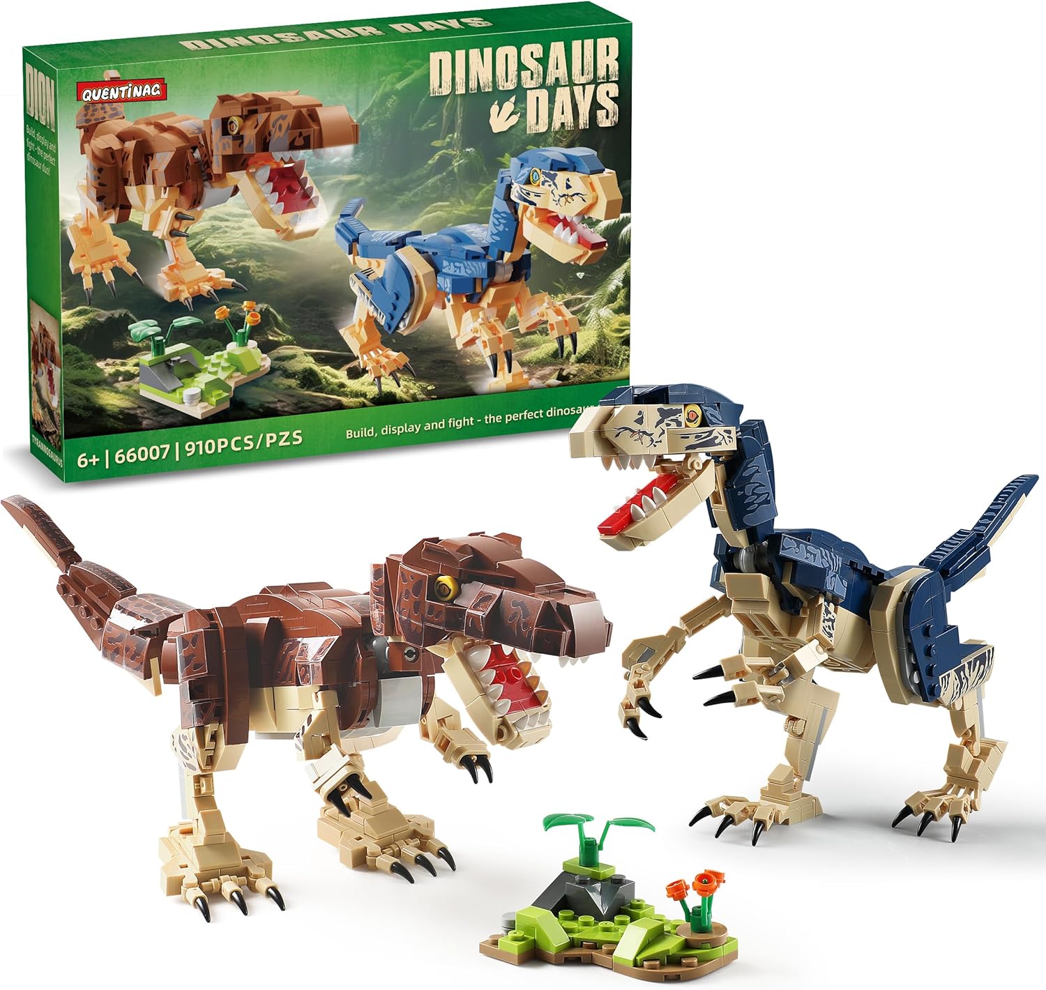 Dinosaur Building Sets (910 Pieces), T.rex & Velociraptor Toy Building kit for Kids, Fun Build-Two-Dinos World for Boys and Girls Ages 6+, Gift Idea for Birthdays and Christmas