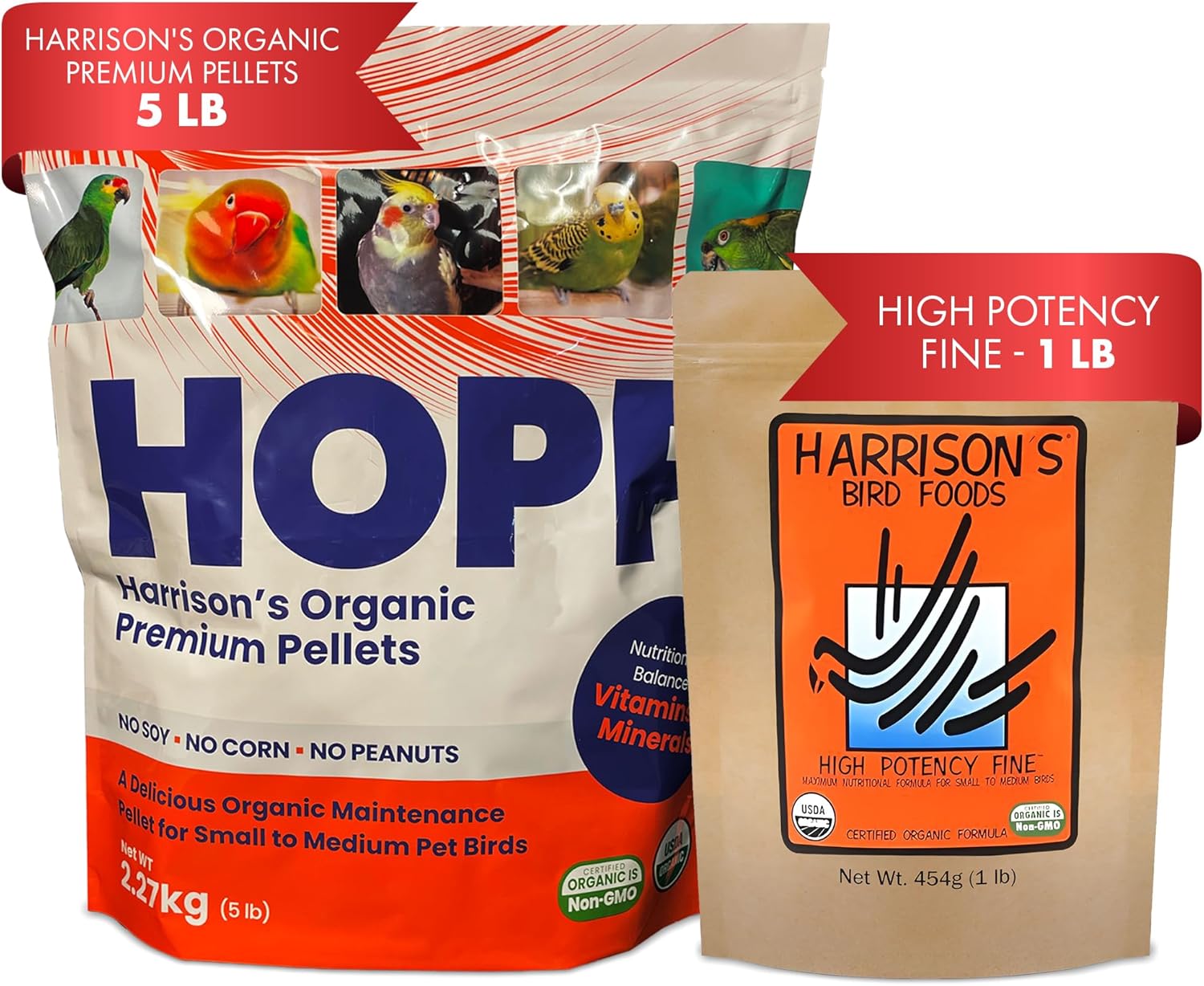 Harrison's Bird Foods High Potency Fine 1LB & Harrison's Organic Premium Pellets Cold-Pressed, Balanced Nutrition for Small to Medium Pet Birds, 5LB