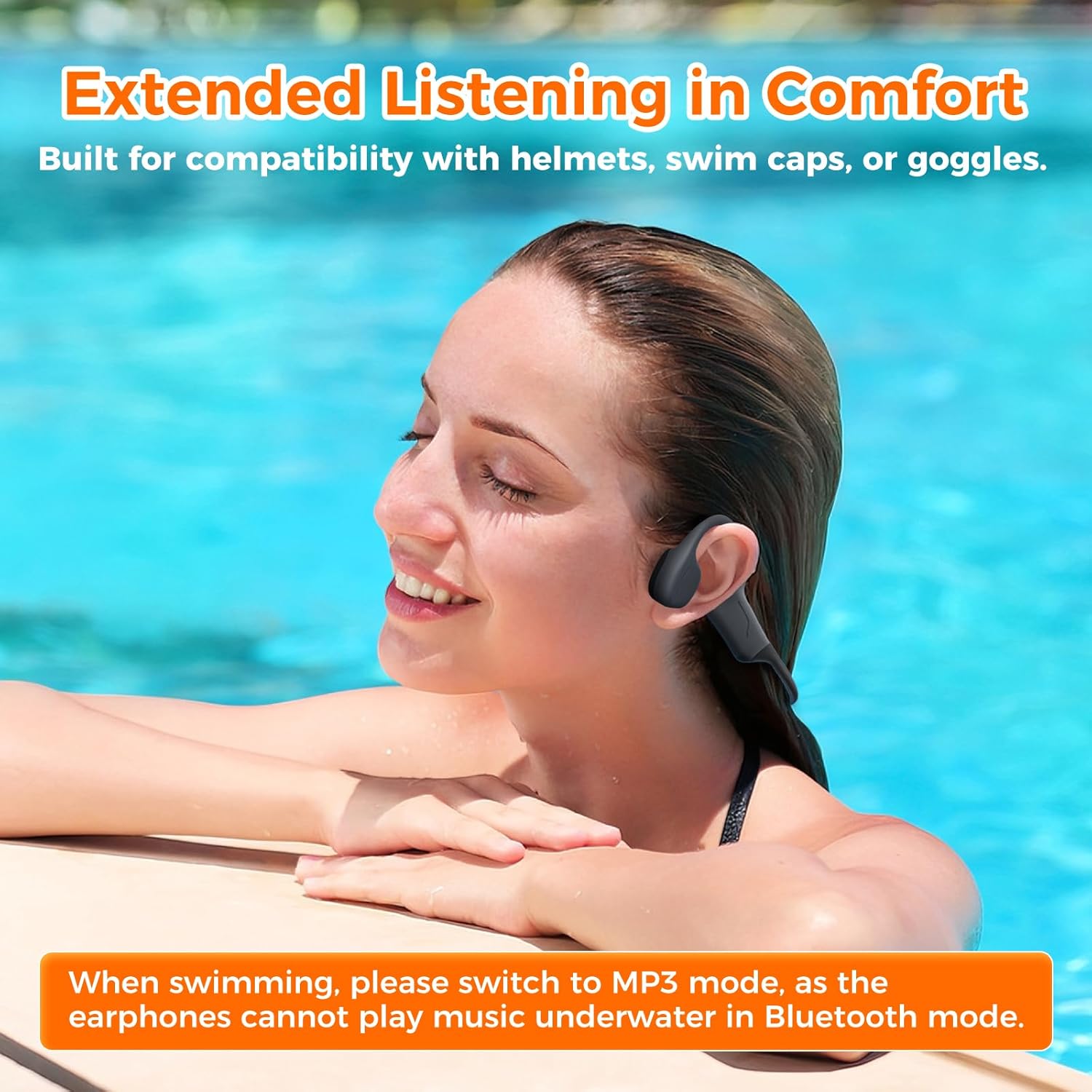 [Lightweight & Secure Fit]: Designed for all-day comfort, the bone conduction swimming headphones provide a secure fit that stays in place even during intense activities. Their lightweight and ergonomic design make them perfect for long workouts, ensuring you stay comfortable and focused. [When swimming, please remember to switch to MP3 mode, as Bluetooth mode won't function underwater.]
