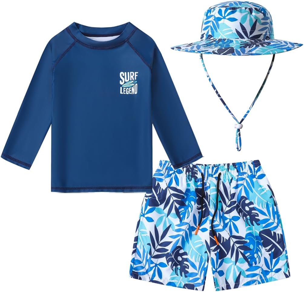 Baby Boys Swimsuit Summer Beach Rash Guard Swimwear Two Piece Sunsuit with Sun Hat